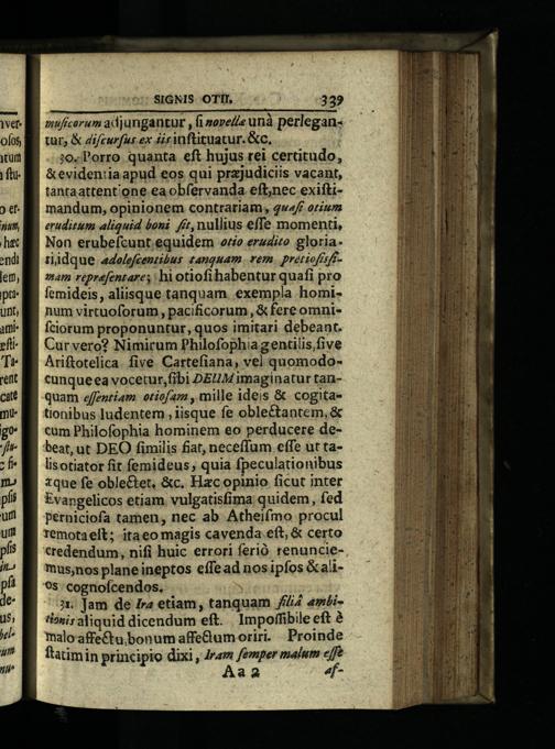3o. Porro quanta eft hujus rei certitudo, &evidentiaapud eos qui prajudiciis vacant, tantaattent'one ea obfervanda eft,nec exiftimandum, opinionem contrariam, qwa/ff orium eruditum aliquid boni. ft, nullius effe momenti, Non erubefcunt.equidem oro erudito gloriaridque adolefcenzibus tanquam vem. pretiofsftmam reprefentares hi otiofihabentur quafi pro femideis, aliisque tanquam. exempla hominum virtuoforum, pacificorum,& fere omnifciorum proponuntur, quos imitari debeant. Curvero? Nimirum Philofophiagentilis,five Ariftotelica. five Cartefiana, vel quomodocunqueea vocetur,fibi DEUM imaginatur tanquam effegtiam. otiofam, mille ideis& cogita» tionibus ludentem, iisque fe oblectantem,& cum Philofophia hominem eo perducere debeat, ut DEO fimilis fiat, neceffum effe ut talisotiator fit femideus; quia fpeculationibus tque fe obleCtet,&c, Hzcopinio ficut inter Evangelicos etiam. vulgatisfima quidem, fed perniciofa tamen, nec ab Atheifmo procul remotaelt; itaeo magis cavenda eft,& certo credendum, nifi huic errori ferió renunciemus;nos plane ineptos effe ad nos ipfos&ali9s cognoícendos.
