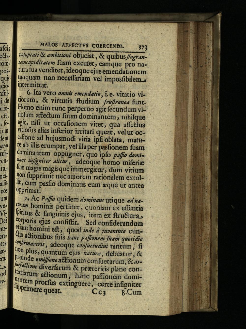 I5 a&ionibus fuis zc palfonem fuam quotidie "frmaverit, adeoque cox/uetudivi tantum, fi » quantum ejus zur, debeatur,& emiffone a&ioaui confüetarum,& 4sufatligns diverfarum& preteritis plane con"riarum a&ionum, hanc paffionem domistem prorfus extinguere, certe infigniter "PPrimere queat. Cc; g.Cum