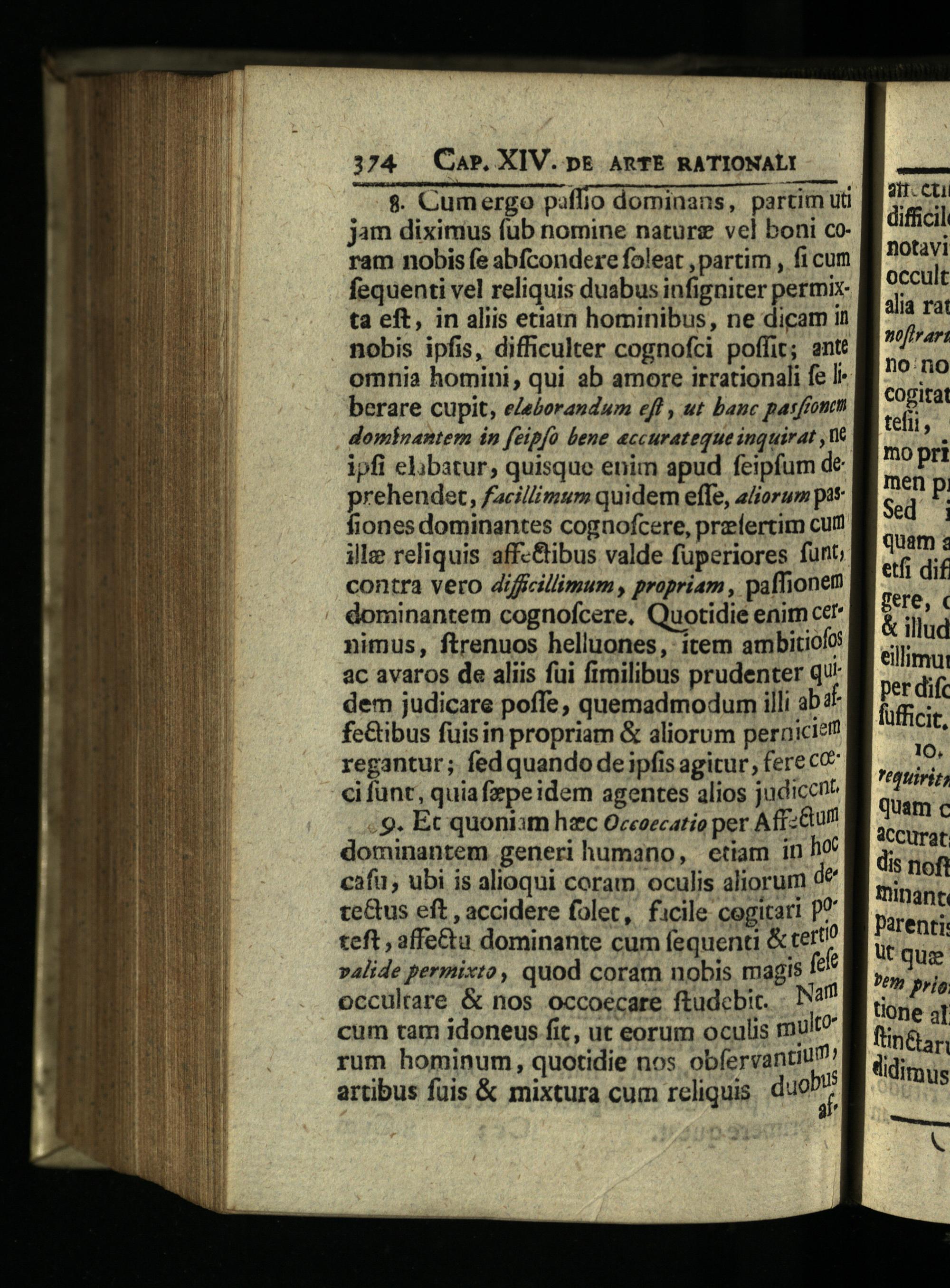 $. Cumergo paffio dominans, partim uti jam diximus fub nomine naturg vel boni coram nobis fe abfcondere foleat, partim, ficum fequenti vel reliquis duabus infigniter permixta eft, in aliis etiatn hominibus, ne dicam in nobis ipfis, difficulter cognofci poffit; entt omnia homini, qui ab amore irrationali fe li berare cupit, eZeborandum eff, ut banc parffonm dombnantem in[eip/o bene accurazeque inquirat ,W ipfi elibatur, quisque enim apud feipfum de prehendet, facillimum quidem effe, adorum pit fiones dominantes cognofcere, praefertim cur ille reliquis aff«&ibus valde fuperiores funt contra vero diffcillimum, prapriam, paffionem dominantem cognofcere, Quotidie enim ctr nimus, ftrenuos helluones, item ambitioló ac avaros de aliis fui fimilibus prudenter qui dem judicare poffe, quemadmodum illi ab4 feGibus fuisin propriam& aliorum pernicie? regantur; fed quando de ipfis agitur, fere c^ ci funt, quia fzpe idem agentes alios judice" 9. Ec quoniam heec Oceeecatío per Aff Qur dominantem generi humano, etiam in ho cafu; ubi is alioqui coram, oculis aliorum de' te&us eft, accidere folet, facile cogitari p^' teft, affe&u dominante cum fequenti& tert? valide permixto, quod coram nobis magis I^ occultare& nos occoecare ftudcbic.. N47 cum tam idoneus fit, ut eorum oculis mult? rum hominum, quotidie nos obfervantiu artibus fuis& mixtura cum reliquis duo"