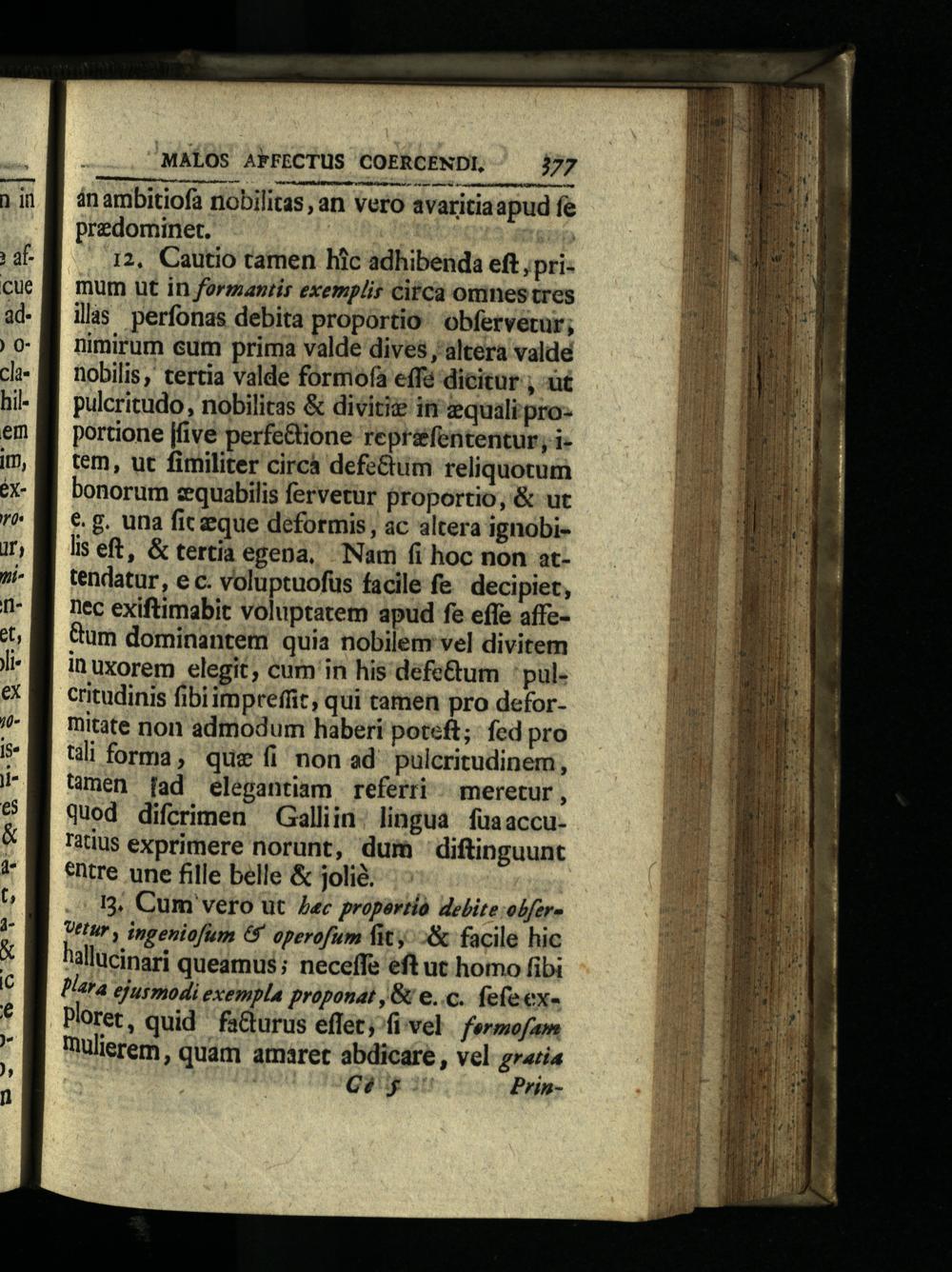 12, Cautio tamen hic adhibenda eft ,primum ut in formantir exemplis CitCa omnes tres illas perfonas debita proportio obfetverur; nimirum cum prima valde dives altera valde Dobilis,' tertia valde formofa effe dicitur, ut pulcritudo, nobilitas& divitia iti equali proportione[five perfe&ione repréfententur; item, ut fimiliter circá defe&um reliquotum bonorum cequabilis fervetur proportio,& ut €. g. una ficeque deformis, ac altera ignobilis eft,& tertia egena, Nam(i hoc non attendatur, e c. voluptuofus facile fe decipiet, Dec exiftimabit voluptatem apud fe effe affe&um dominantem quia nobilem vel divitem inuxorem elegit; cum in his defe&um'pulcritudinis fibi impreffit, qui tamen pro deformitate non admodum haberi poteft; fed pro tli forma, quz fi non ad' pulcritudinem, tmen[fad elegantiam referri^ meretur, quod difcrimen—Galliin: lingua fuaaccuTatius exprimere norunt, duim diftinguunt entre une fille belle& jolié.