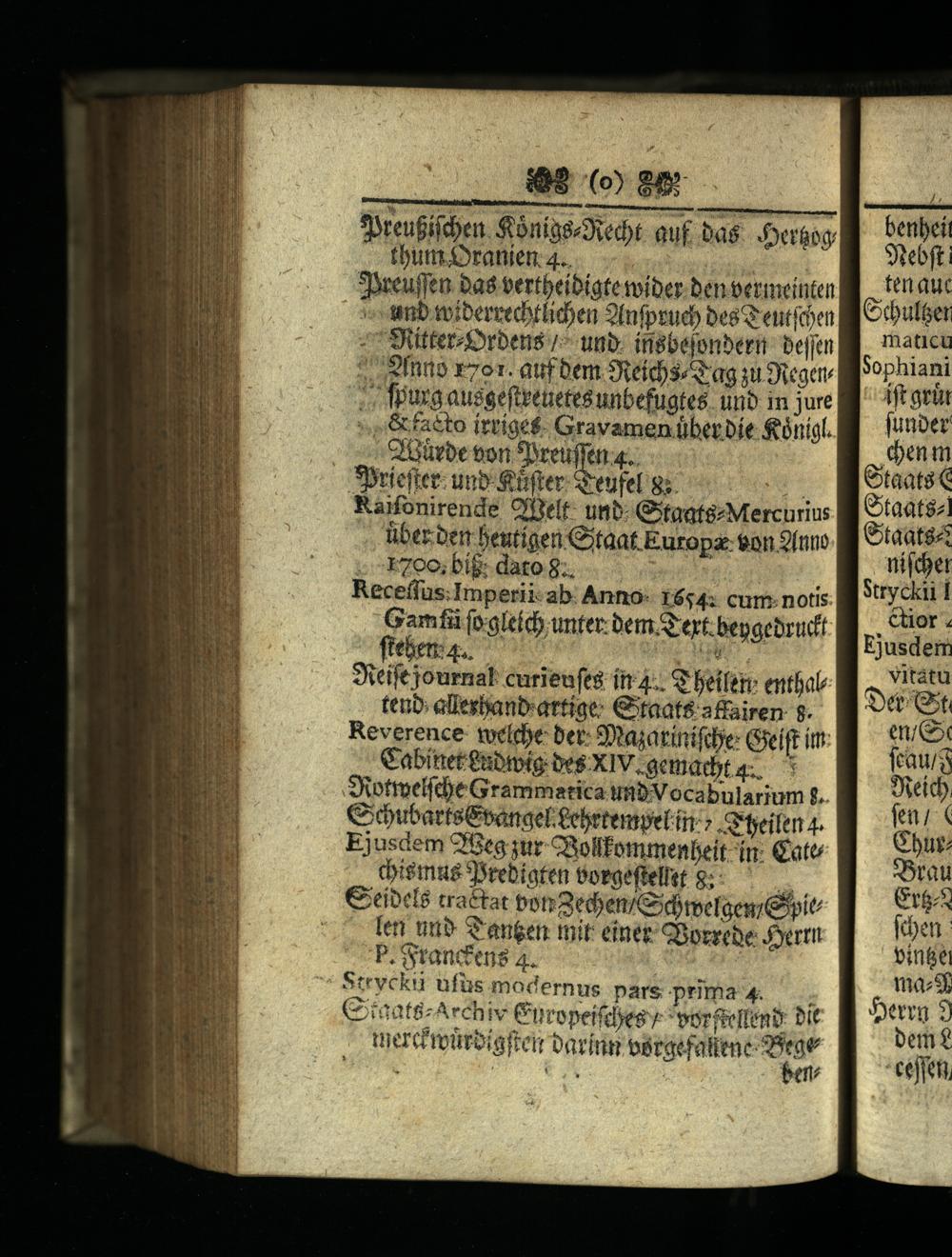 *breufitcben Soniasvedt auf. bas JSttüog tbutt.ranien. 4. i SDeeuffen ba bertbeibigte tiber benbermeinten amb toiberceditlidoen 2(nfprud bes Qentiben : 7 SRitfer-£»rbens 7^ unb. insbefonbern beljen 2?" Efnro rzot. auf bem 3eeidhs/S ag su Suegttv /; Wpurg ausgefteeuetesunbefugtes. unb in jure »,,&faéto itríge. Gravamen überbíe&ànigl Coüvbe ton*Dreuffen 4... Sirieftee: unb üfter Sreufel 9; t Raifonirende Offielt- unb- GstaatezMercurius über ber Beutígen C3taat Europa eon 2fnno .^k7OO big: datog....: Receffüs;Imperii: ab. Anno- 1654: cum. notis e fii(vglefd) unter bem.S ert: bengebrudt Sieife journal curieufes i4: S betleri entbab teub: allesbanbyartiae:€ taat& a&airen. Reverence: toelebe: bet: Snajatinifde Geift it: Cabinergubmig be$ XIV.gemadta..^ Sipttpelíc)e Grammatica mbVocabnularium£.. CibubartsEsangel£ebetenyet in».Seilen 4. Ejusdem Cfeg jur CBollfommenbeit in: Cate dismus srebiaten Porgeftellet 8; G'eibelé tra&tat boneden/GdymetgenrGhpit -. Te unb'angen mit einet CBozrebe Jyerti 'P.Oyrancfens 4. Strycku ufüs modernus pars. prma4. GíiaatgzArchiv Curopeifdyes v"worfecllen? bít terc nürbiaftemr oarinn SSRRRINISE EN
