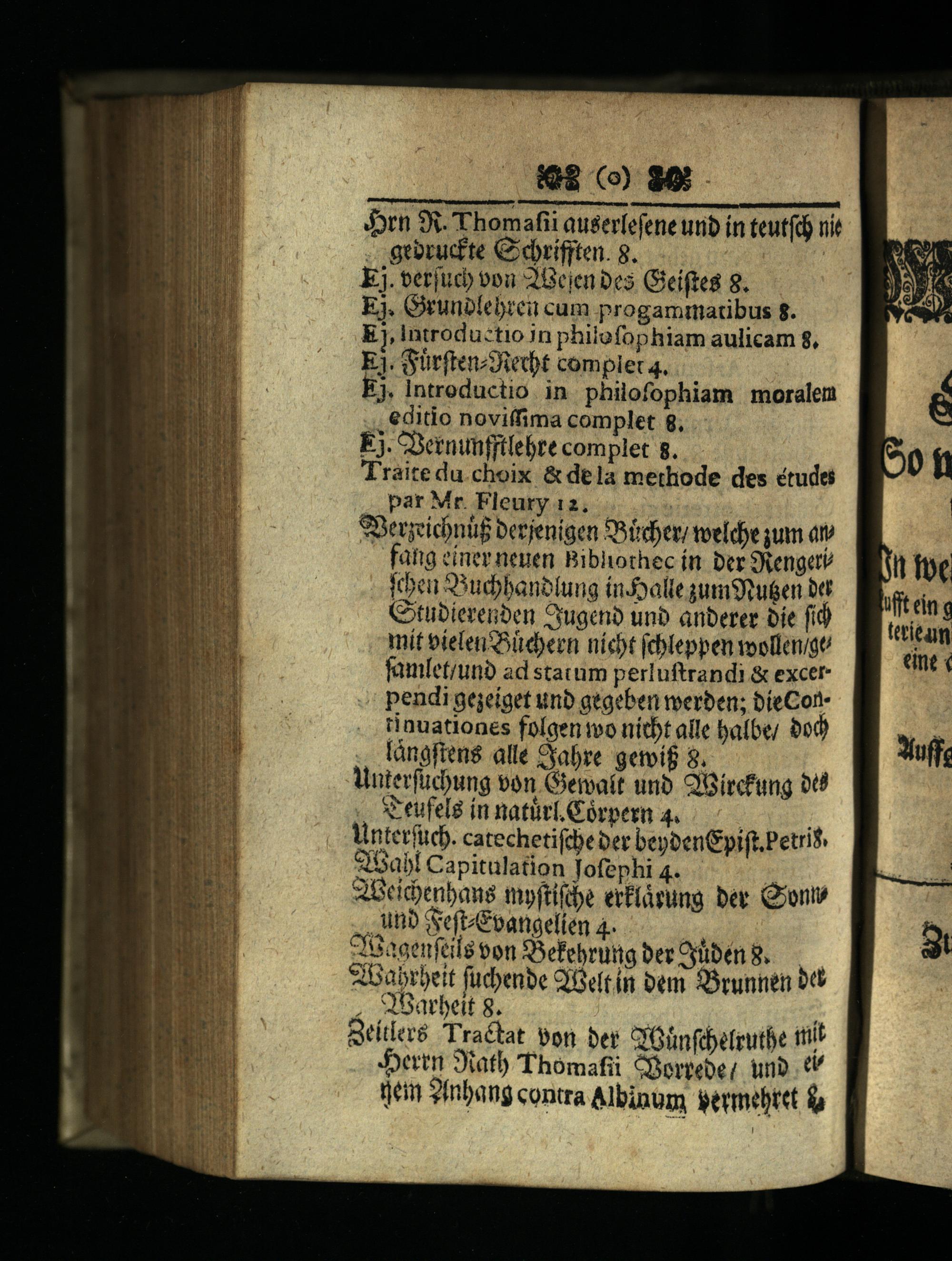 Arn 3. Thomafii auserlefene urib in teutfdj nit . georucfte Cidbrifiten. 8. Ej. terjuc) vou 2Beien Des Gieiftes 8. Ej, Grunolebreii cum progammacibus$. Ej, introdu:tio jn philofophiam aulicam 8, Ej. SürfienzJüecbt complet 4. J. Introductio in philofophiam moralem . editio noviffima complet 8,. Ej. Chermunfftlebre complet 8. Traitedu.choix& dela methode des étude par Mr. Fleury 12,| 3ergiontif berjenigen iden weldpe qum a fatig einer neuen. Bibhothec ín. Der SRengeté fen S3udybanblung inJxalte gumStuten d Ctubierenben Cyugeno unb anberer Die fid) mit efelensBüd)een nicbt jcbleppen mollen/gu famletiunb ad statum perluftrandi& excerpendi gejeíget unb gegeben tverben; bíeContinuationes folgen to nítbt alle balbe/ 00d langften$ alle Sabre getvif 9. Wuterfücbung von Gemait unb 9'Gircfung 08 . Seufela innatür.Corpemn 4. Vinterfuc. catechetifcbe ber beybenGpift.Petrif. SBabl Capitulation Tofephi 4. B. Beicenbans myftifbe erf(arung ber Qyontv , ub Geft/Cbangelten 4. -Magenfeils bon SBefebrung ber Oylbén 8..— IBabrbeit fudenbe QiBeft in bem. Svunnen 0d , QBarbeit 8. vs Qeítleró Tractat von ber. GGünfbefmutfe tti Dern Siatb Thomafii CBorpebe; unb. tjein 3mbang contra Albinum ermetet i