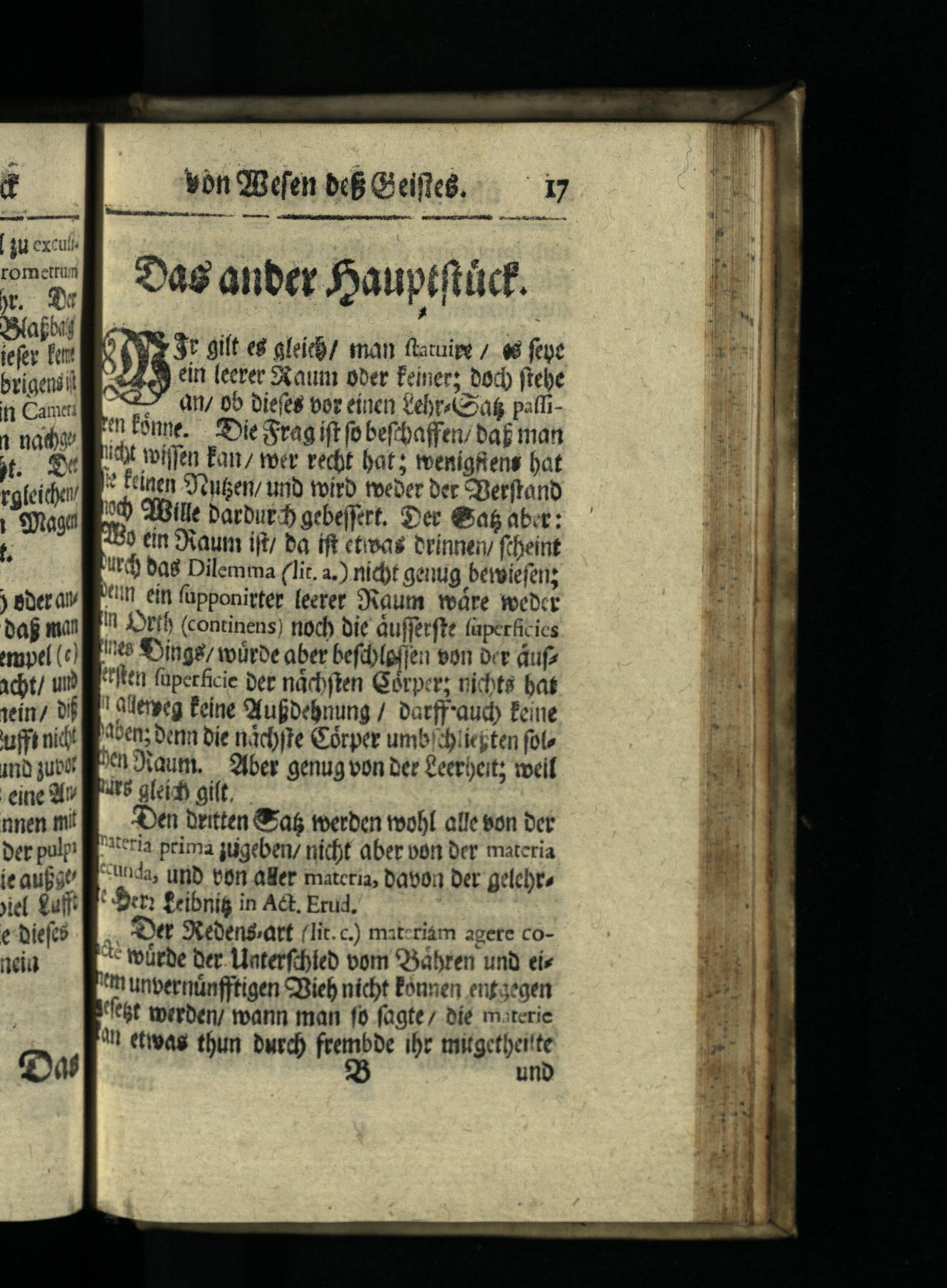 d ein(eeree SX aut poer Feiners bac) ftebe - m 05 biefes bor einen terea palfim fénne.— fie Stag ift fo befrpaffer bag man ndi voijjen Fan mer redot bat; wenigRens Dat li feinen SY twgen, urit voitb teeber ber Cperftarb ^6 2IBille arbut-b gebeffert. Der a6 abet: 9€in Raum ijt/ ba ift ct'eas Crinnen/ fibeint und) bas Dilemma(lit. a.) nidbt genug betsiefeng «n ein füpponipter[eerer SRaum vedre webxr !1 Jrff(continens) nod bie áufferfte faperficics t$ Sings; woürbe abet befdblpfjen eon bcr dufz M faperficie bee nácbften Gérpcr; vicbts baf ! Qdenptg Peine 9fufbeBnung/ Darff-aud) feine nbn; bern bie ndd)fte rper umbidpiieiten fot» Xn9iaum.—Ofber genug von bez£eerboit; wei "r$ afeidh gift, ."Otn briten a6 toerben teobl atle son bet Aria prima qigebeny nicbt aber pen Der materia «unda, unb t6rr aHer matcria, Davon Der gelebt» Gen teibnig in AG, Erud, Sy S&ebensiatt(lit. c.) mit-riám agere co^^ teürbe Ber Materfiieb vorm Q3ábren unb ei» "ttt unpernümfftigen CBieb nídbt Eounen entataen Mtst werben; tvoann man fo fagte/ bíe m:terie "1 etivag thun. burd) ftembbe ib tmitgrtpeite $5 unb