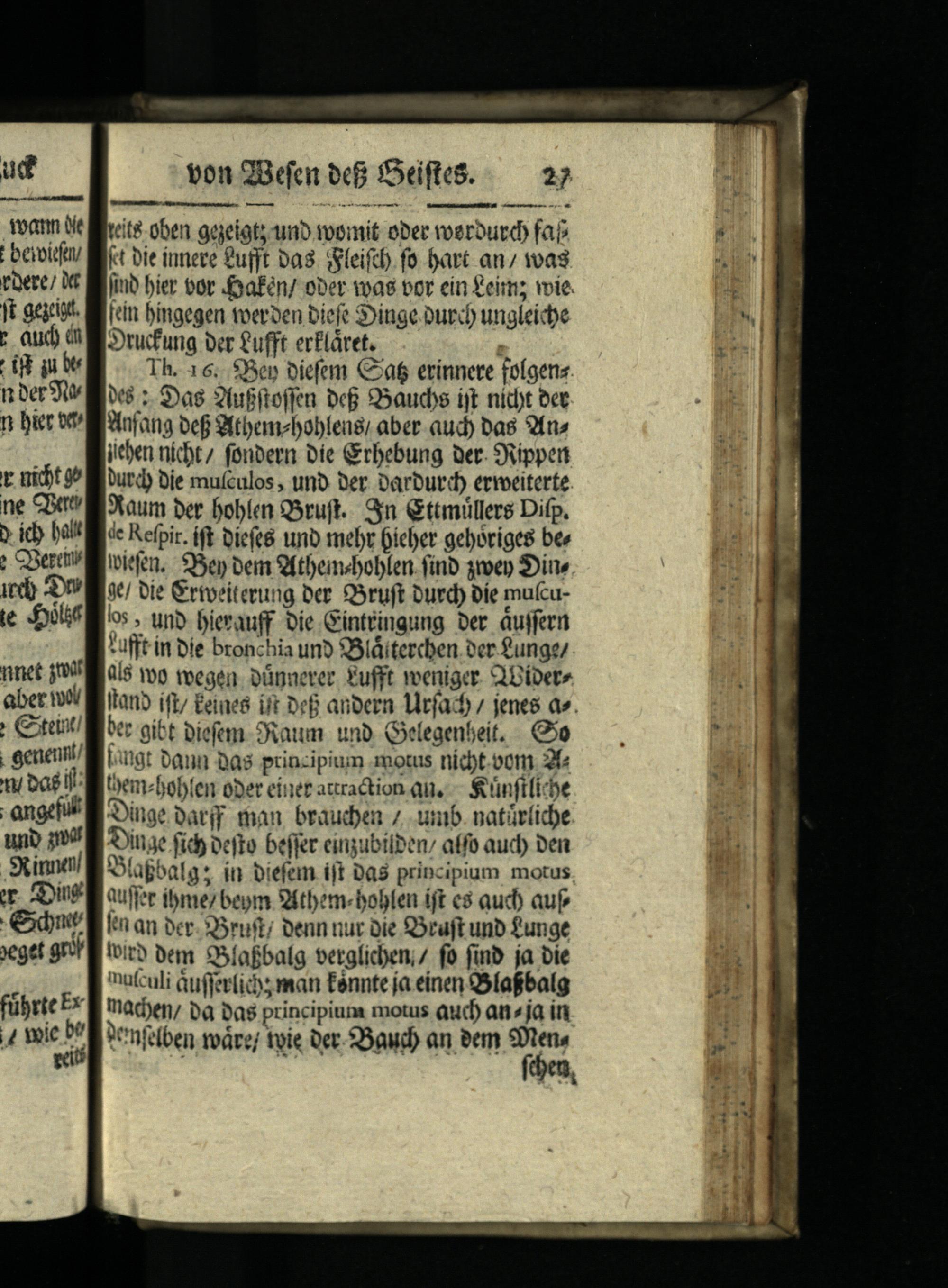 Th. 16... 93er oiefem Ca erinnere foígena 8: 268 2iufftoffen Dg 95aucbs ijt nidt bec Qtafang pef 9ftbemabobleng; aber aud) bas 9fn« iiben nct, fonbern Die&rbebung üer. Ripper Qurd) bie muículos, unb ber Darburd) ervociterte AXaum ber bobien QSruft... Sn Gttmillers Difp. «e Refpir. ift biefeé unb mebr Gicber geboviges bee wiefen. Sep bem 9ftbemdoblen. finb 3men Sine 9t/ bie rtveiterung Der. O3ruft Durd) Die muícuo, unb Dierauff vie Ginttingung Der auffern "ufftin bie bronchia un»$Bláitercben. ber£unge/ àl$ op teegen. oünaerer. Eufft weniger. QiDiDete tan» ift/ Éeines ift beB anbern Mrfado/ jenes a». ber gibt Diefem Jam. unb. etegenbeit. o agt bann Da8 prinzipium motus nicbt.ootm. 3f Dem»boblen oper eine auraction au,— ünftlicbe Jinge Dari. man. braudyen 7 umb. natür(idje ^Dinae fid) peto beffer cingubilben, affo aud) Den Oapbalg; in Diefem ijt Da8 principium motus Quffr ibme/beom Qitbem-boblen ift c$ aud) auf lt qn ber 3Sruft; Denn nur Die SOruft unb funge lvi? bem. O3afbalg teralicben;/ fo finb ja bie matculi Qufev(icys man Eénnte ja eínen QSfafbalg nadyen/ bà bas principium motus aud) an» ja in Venfelben táre/ foie Qer-SBaud) an eem tens