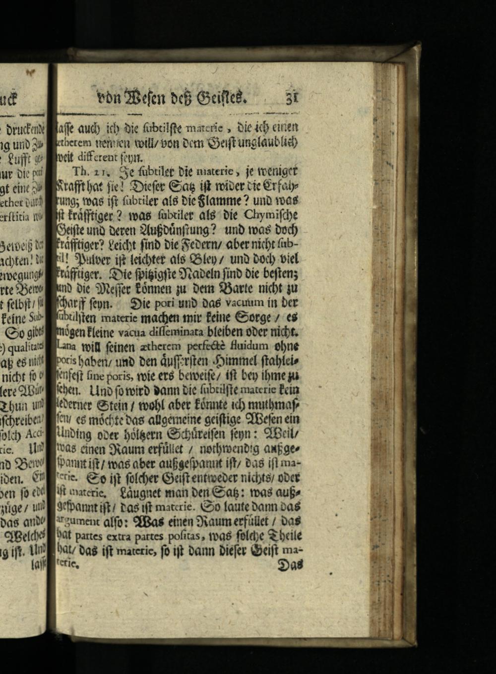 affe aud) icb bie fübtilfte materie, oie&b cine therem tetien Qoill/ oon eem Goeaft unglaublid) vtit diffcrent(epit. Th. z:, Sye fübrilet bie naaterie, je teeniget tafftbat fie! Syiefer Gag ift rofber cie Crfaly ung; t»ag ift fübtiler a(8 bie Slamme? unb voas ft tràfftiger? was fubxiler afs- bíe Chymifdye Stifte unà Qeren 3fufoünjung? tnb mas Dod) Frafítioer? geicht finb bie Scoern/ aber nicbr(ab1! 3yufoer ift leicbtet afó QSíen/ una bod) viel tüfftiger, Sie fpigigfte Jeabeln finb bie beftens tn) bie SXejjec£ónnen ju. Dern SSarte nicbt qu Kbarif feon.^ Sie pori unb Da6 vacuum ín ber übtiliten materie myaden mir feine€orge /. e$ mógen É(eine vacua dilfeninara bfeiben ober nicht. na toill feinen ztherem perfe&e fluidum 9bne poris baberi; umb ben duff:rften Aimmel ftableis Knfeft fine poris, vole er8 beroeife/ fft bep ibme gu kben. Lino fotoirb Pann bie fubtilfte materie Écin (eter Gtein/ voll abe Eónnte id) mutbmaf fv e$ m&otebas allgemeine aciftige CIBefen ein Wnbing ober bol&ern Gibüreifen feyn: CIBci/ 'và$ einen SRaum erfüllet/ notlroenb!g auper lpannt ift/ teas aber aufsefpanut ift/ bas ifl maUe.€ ijt fofcber Geiftentioeber nidyte/ oDct ütoaterie,€àugnet man beri€a6: tas auf» Srfpannt ift/ bas tft matcrie. 0 faute bann 2a$ :"ument alfo: 9fBas einen Saum erfüllet/ a$ 0àf pattes extra pattes pofitas, tva$ feld;e beile