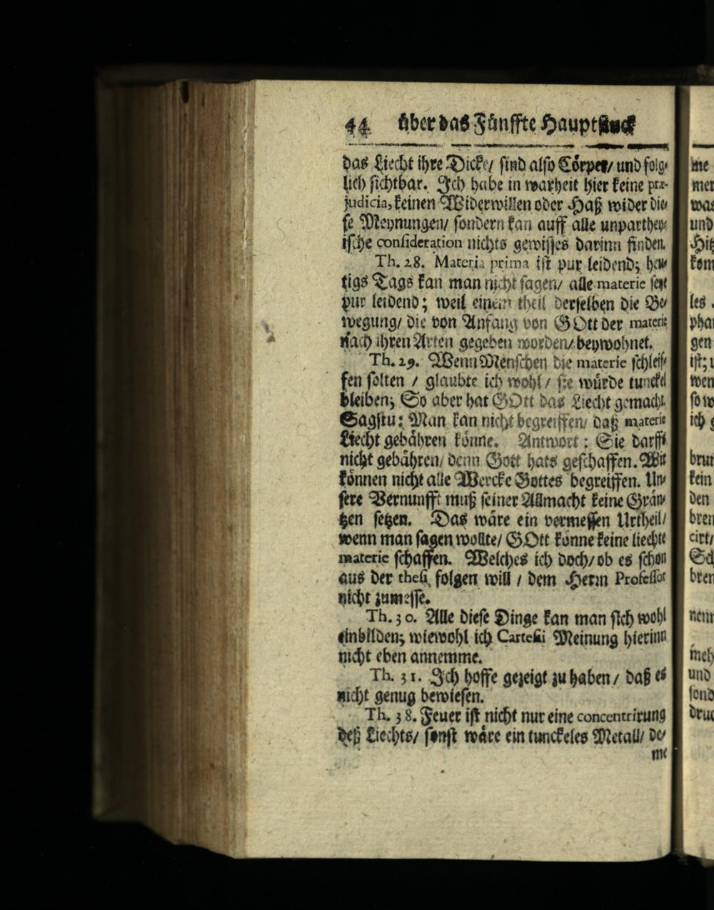 4&4 übebasSünffte Sauptiud bas fi«bt ibre icu finb alfo&rpety unb foy lic fibtbar. e babe in eatbeit jit Éeine przjudicia; Einen*$Gibermilten ober afi voiber bit fe SDtepnungen, foubetn fan auff alle unpartbor ifie confideration nidts gerijjes batinn finben Th. 28. Materia prima fft put[eibenbs bow tígs Qags fan man nit faoen/ affe materie fat