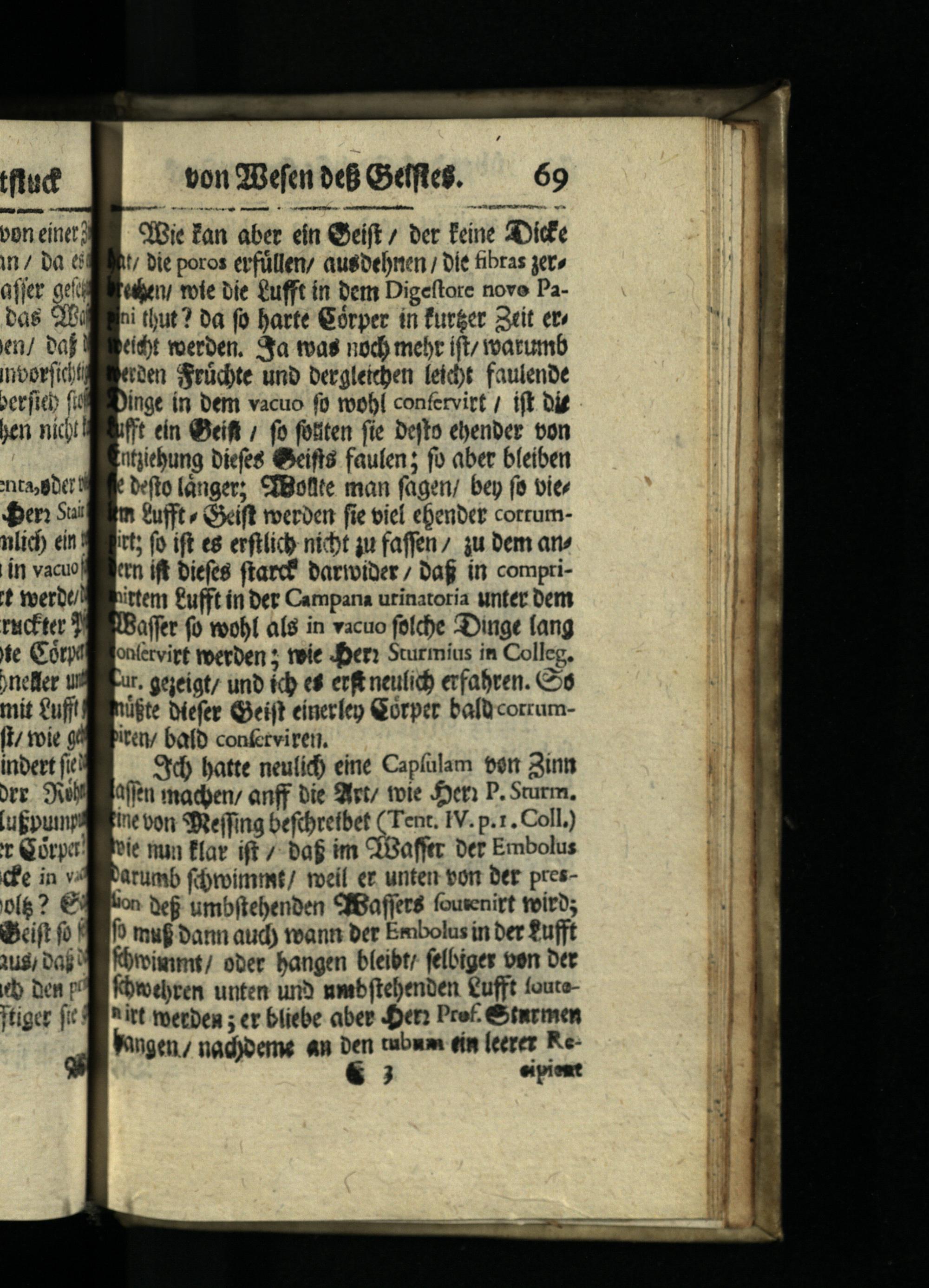 ton 2Befcnt 0e Gxdflcs. 69 OfBie Fan aber. ein Queift^ ber Peine a3Did'e ht bie poros erfüllen/ ausoebnen/ bie fibras ger» then vote bie&ufft in Der Digeftore nove Pahi tut? ta fo batte Górper in fur&er zit etv tí)t toerben, Sya tvas$ nod) mebr ift; voatumb raen Srüdyte unb bergleicben feit. fauienbe Dinge ín bem vacuo fo voobí confervirt/ iff Dif fft ein eif; fo fotiten fie DefTo ebenber von ütgiebung biefes Geift8 fauíen fo aber bfeíben t befto langer; CBofite man fagen/ bep fs vie th Cujft» Gxeift voerben fie bicí ebenbct corrumitt; fo ift e8 erftlid nicbt qu faffen/ 3u Dem ar tn ift biefes ftarcf bariviner/ Dafi ir compriittem£ufft i Der Campana urinatoria unter oem Baffer fo voob[ a[s in vacuo felcbe 3Dinge fang ontétvitt woerben; teie Aber: Suirmíus in Colleg, 1. geyeigt/ unb ídp e$ erftneufid) erfabren. C56 Vüfte Mefee Queijt eínerfeo Qorper bafücorrumhire bafo confviren. 9td) batte neulid) eine Capíulam rt Sinn affe madyen; anff bie 9trt/ tole Jer P. Scirm., Ine on SRejfing beftbrefbet(Tenr. IV. p.1. Coll.) it tun flat ift/ baf im CfGafftr Der Embolus arumb fiyroimmt/ moeif ec unten tor Der pres