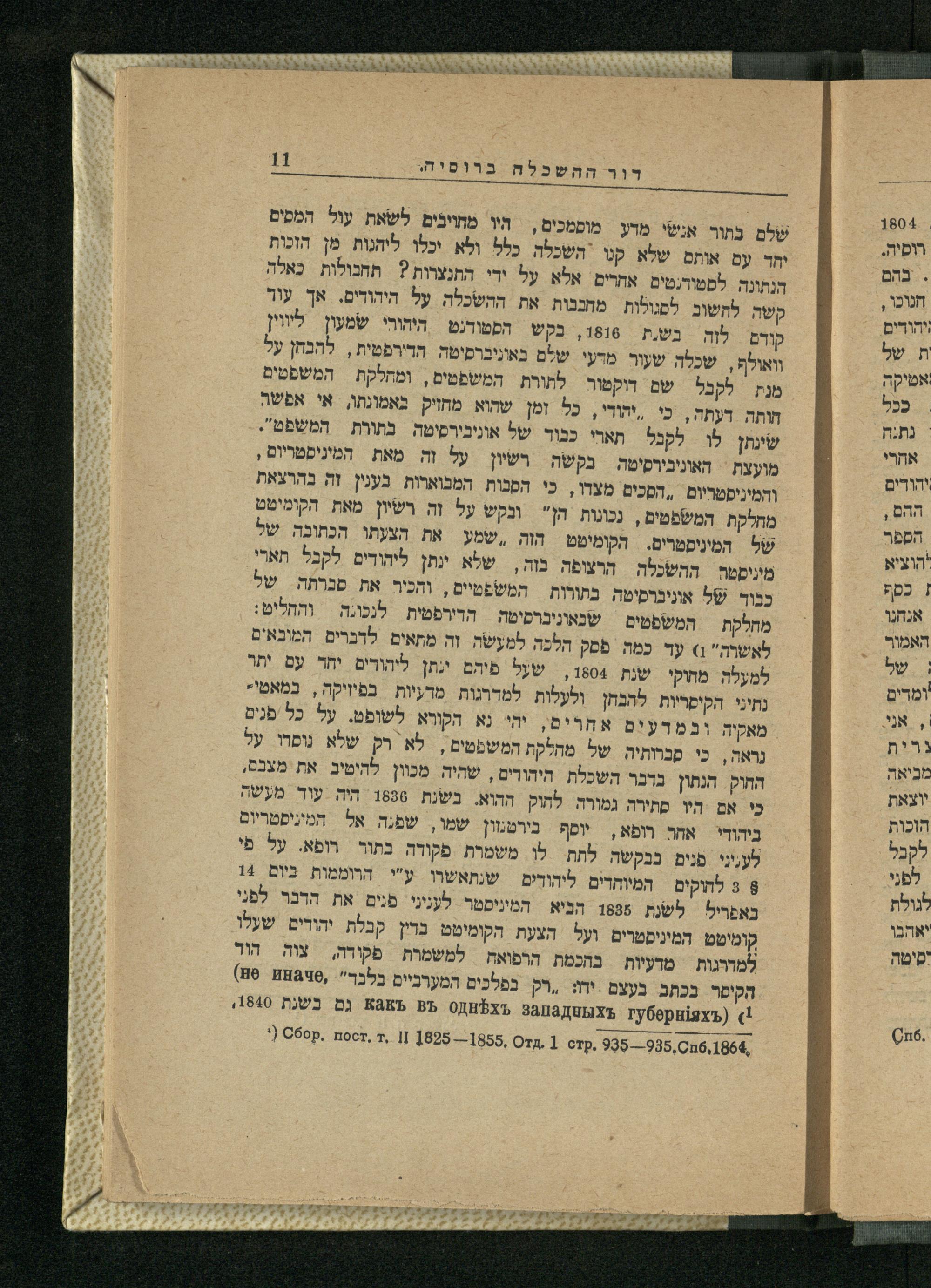 שלם בתור אנשי מדע מוסמכים, היו מחוינים לשאת עול המסים יחד עם אותם שלא קנו השכלה כלל ולא יכלו ליהגות מן הזכות הנתונה. לסטורנטים אחרים אלא על ירי התנצרות? תחנולות כאלה קשה לתשוב. מחכבות את ההשכלה על היהודים. אך עור קודם לוה בש.ת 1816, בקש הםטודנט| היהורי ליווין וואולף, שכלה שעור מדעי שלם באוניברסיטה הדירפטית , להנחן על מנת לקבל שם דוקמור לתורת המשפטים, ומחלקת| המשפטים חותה דעתה, כי| יתורי, כל זמן שהוא מחויק באמונתו, אי אפשה שינתן לו לקנל תארי כנוד. של אוניבירסיטה בתורת| המשפט". מועצת בקשה רשון על וה מאת המיניפטריום, והמיניסטריום..המכים מצדו, כי הסנות המבוארות בענין זה בהרצאת מחלקת המשפטים, נכונות הן" ונקש על וה רשיון מאת הקומיטם של המיניסטרים.| הקומיטט הוה ,שמע את הצעתו הכתובה של מיניסטה| ההשכלה הרצופה. בזה,| שלא ינתן ליהודים. לקבל תארי כנוד. של אונינרסיטה בתורות| המשפטיים, והכיר את של מחלקת| המשפטים שבאונינרסיטה| הירפטית לנכ.ה| והחליט: לאשרה") עד כמה פסק הלכה למעשה זה מתאים לדברים. המובאים למעלה מחוקי שנת 1604, של פיהם יגתן ליהודים יחד עם יתר