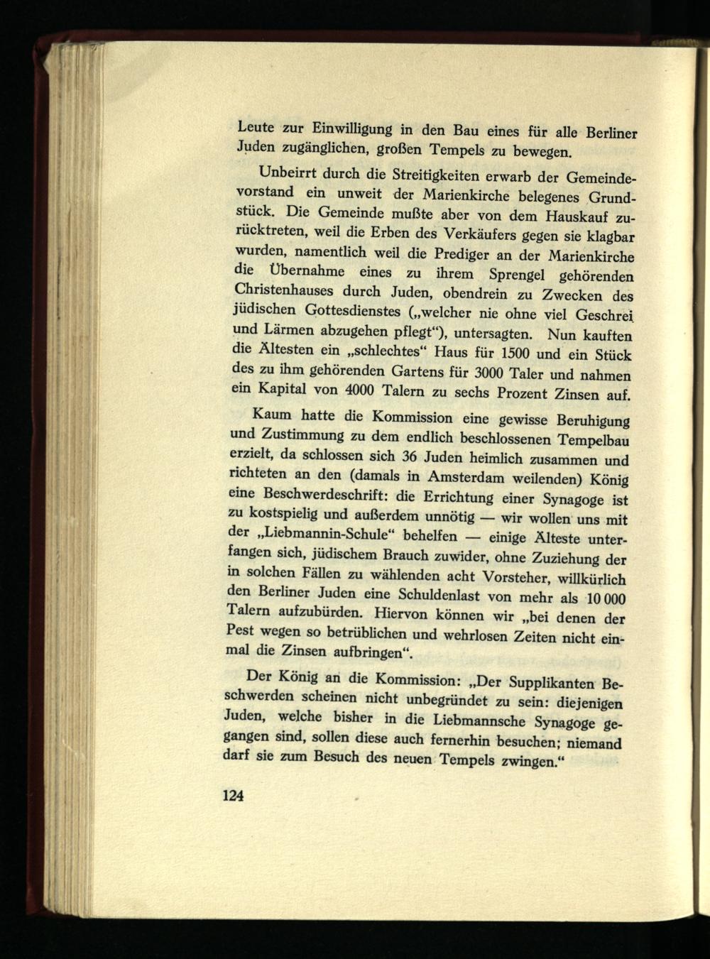 Der König an die Kommission: „Der Supplikanten Beschwerden scheinen nicht unbegründet zu sein: diejenigen Juden, welche bisher in die Liebmannsche Synagoge gegangen sind, sollen diese auch fernerhin besuchen; niemand darf sie zum Besuch des neuen Tempels zwingen.“