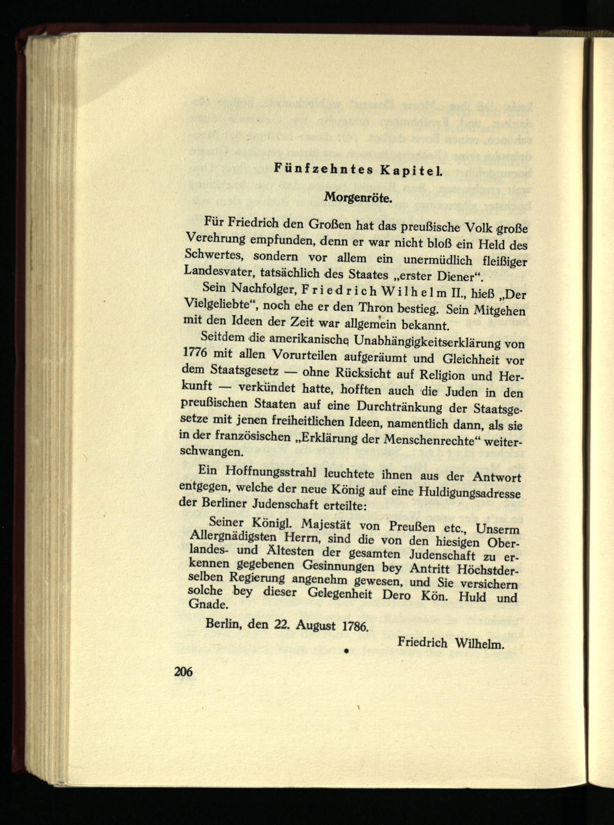 Ein Hoffnungsstrahl leuchtete ihnen aus der Antwort entgegen, welche der neue König auf eine Huldigungsadresse der Berliner Judenschaft erteilte: