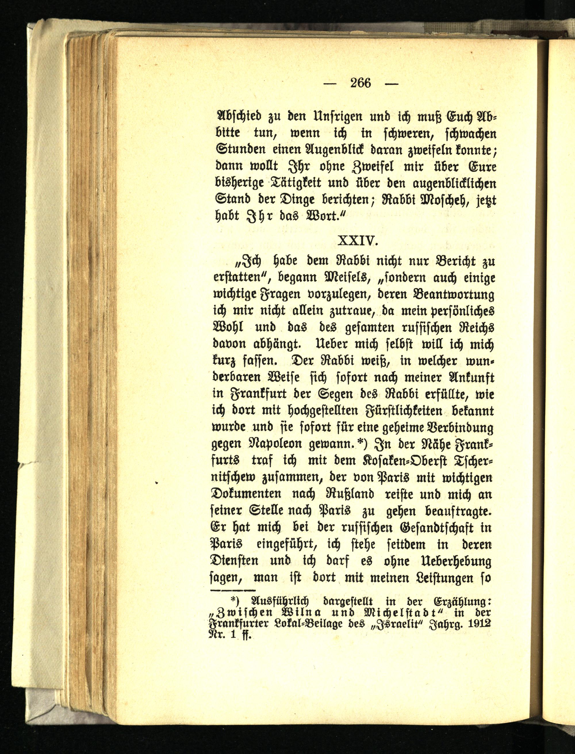 Ausführlich dargestellt in der Erzählung: „Zwischen Wilna und Michelstadt" in der Frankfurter Lokal-Beilage des „Israelit" Jahrg. 1912 Nr. 1 ff.