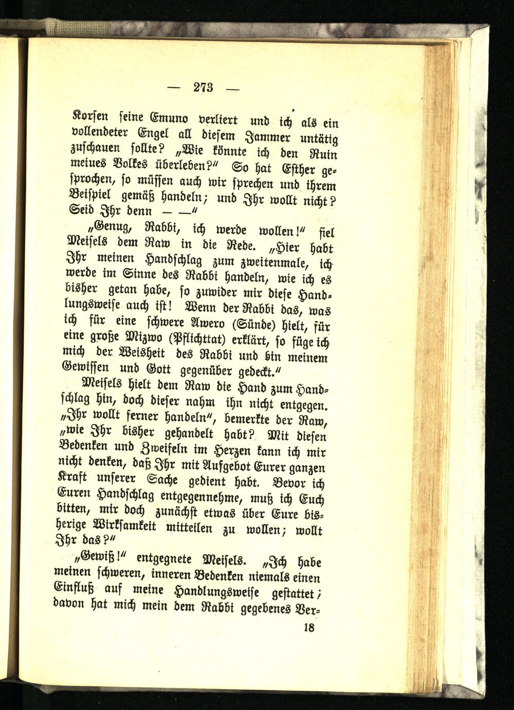 „Genug, Rabbi, ich werde wollen!" fiel Meisels dem Raw in die Rede. „Hier habt Ihr meinen Handschlag zum zweitenmale, ich werde tm Sinne des Rabbi handeln, wie ich es bisher getan habe, so zuwider mir diese Handlungsweise auch ist! Wenn der Rabbi das, was ich für eine schwere Awero (Sünde) hielt, für eine große Mizwo (Pfltchttat) erklärt, so füge ich mich der Weisheit des Rabbi und bin meinem Gewissen und Gott gegenüber gedeckt."