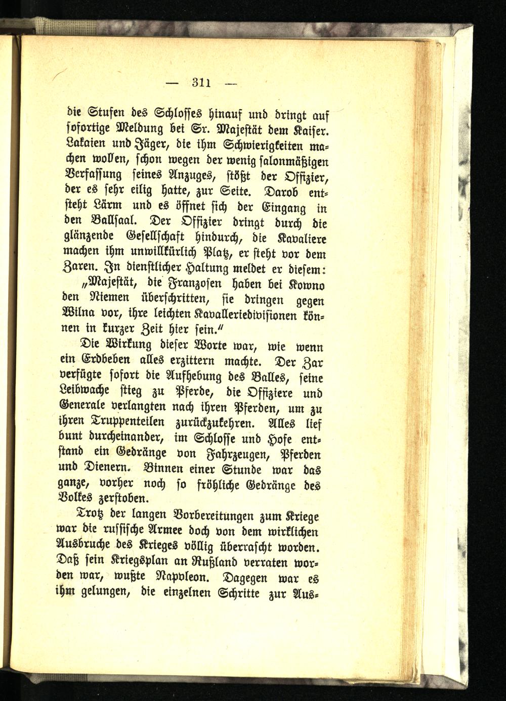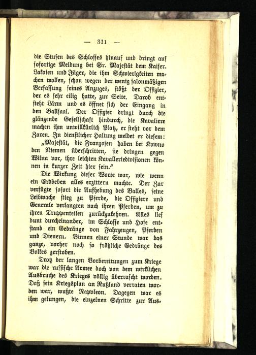 „Majestät, die Franzosen haben bei Kowno den Riemen überschritten, sie dringen gegen Wilna vor, ihre leichten Kavalleriedivisionen können in kurzer Zeit hier sein."
