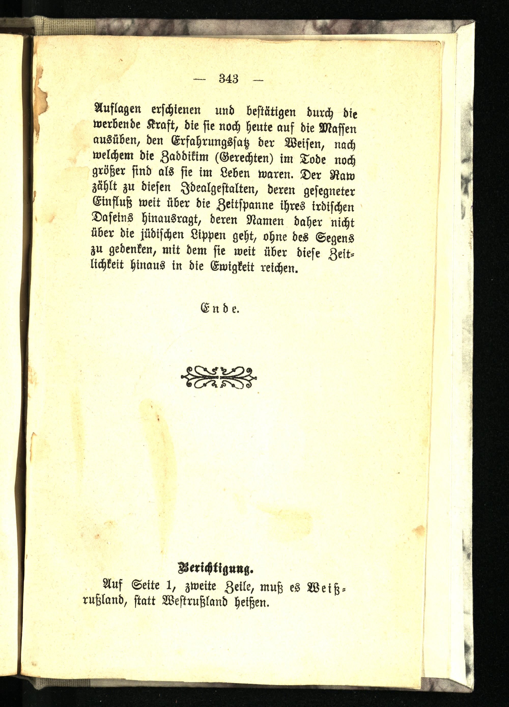 Auflagen erschienen und bestätigen durch die werbende Kraft, die sie noch heute auf die Massen ausüben, den Erfahrungssatz der Weisen, nach welchem die Zaddikim (Gerechten) im Tode noch größer sind als sie im Leben waren. Der Raw zählt zu diesen Jdealgestalten, deren gesegneter Einfluß weit über die Zeitspanne ihres irdischen Daseins hinausragt, deren Namen daher nicht über die jüdischen Lippen geht, ohne des Segens zu gedenken, mit dem sie weit über diese Zeitlichkeit hinaus in die Ewigkeit reichen.