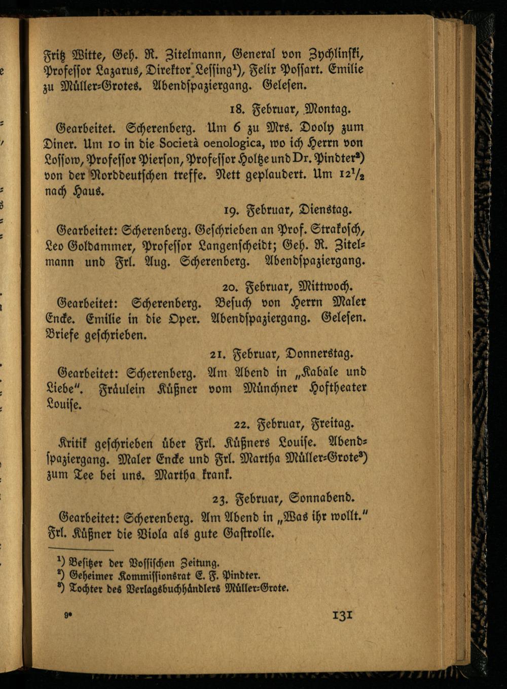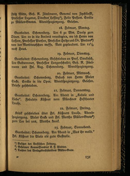 Fritz Witte, Geh. R. Zitelmann, General von Zychlinski, Professor Lazarus, Direktor Lessing 1), Felix Possart. Emilie zu Müller-Grotes. Abendspaziergang. Gelesen.
