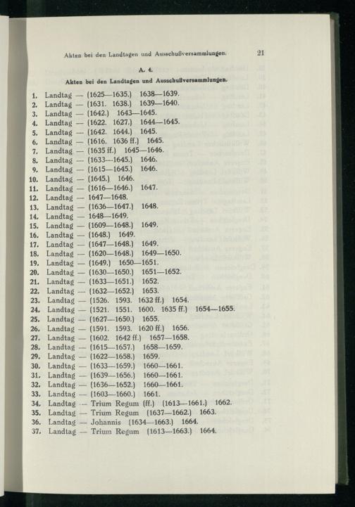 Landtag—(1647—1648,) 1649. Landtag—(1620—1648.) 1649—1650. Landtag —(1649) 1650—1651, Landtag—(1630-—1650.) 1651—1652, Landtag—(1633-—1651.) 1652 Landtag—(1632—1652.) 1653. Landtag —(1526. 1593. 1632ff.) 1654.