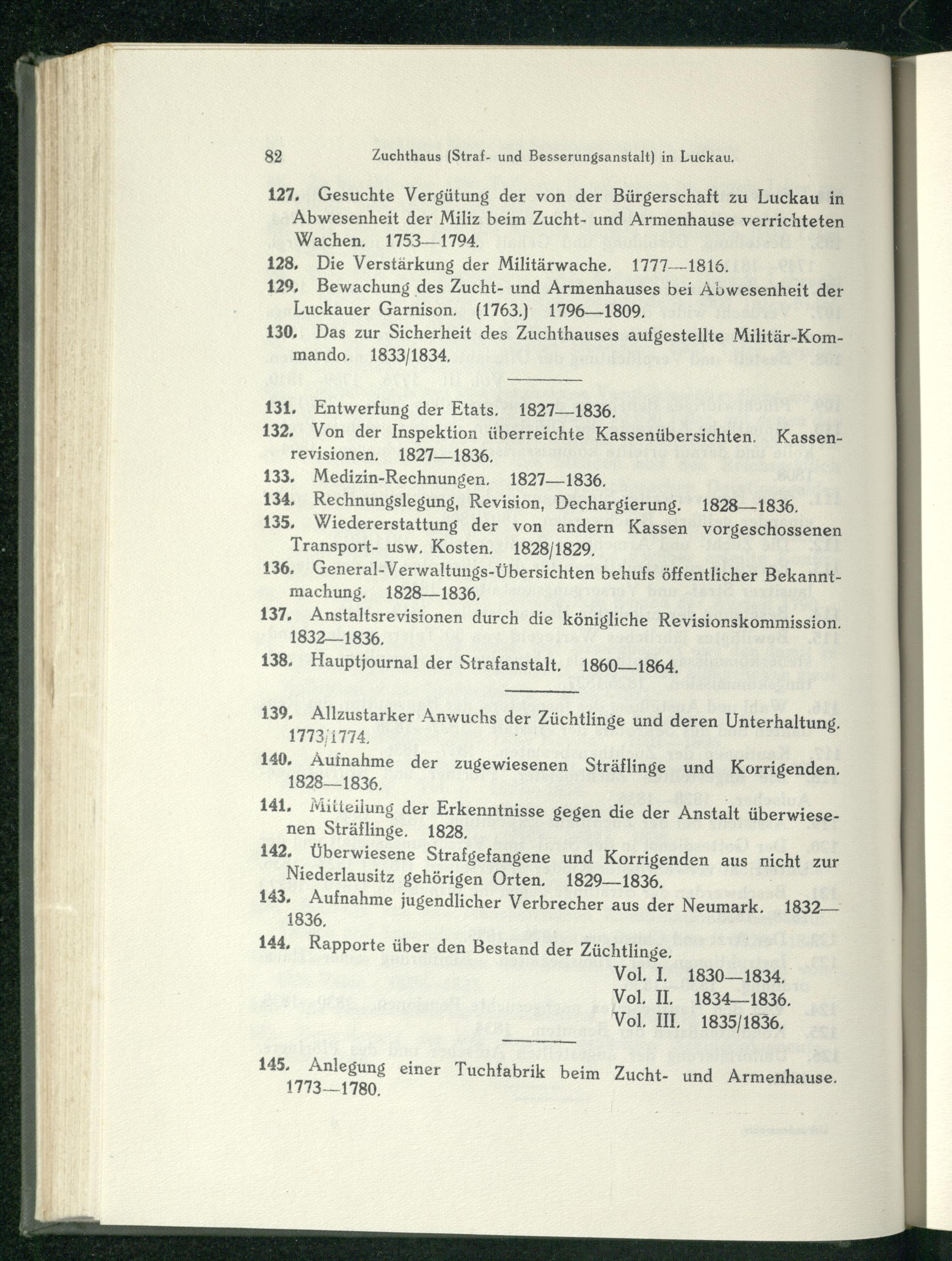 144, Rapporte über den Bestand der Züchtlinge, Vol. I. 1830—1834, Vol, II, 1834-—1836. Vol, IL. 1835/1836,