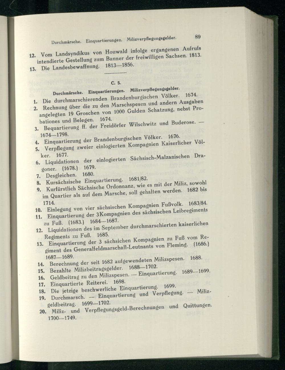 12. Vom Landsyndikus von Houwald infolge ergangenen Aufrufs intendierte Gestellung zum Banner der freiwilligen Sachsen, 1813. 13. Die Landesbewaffnung, 1813—1856,