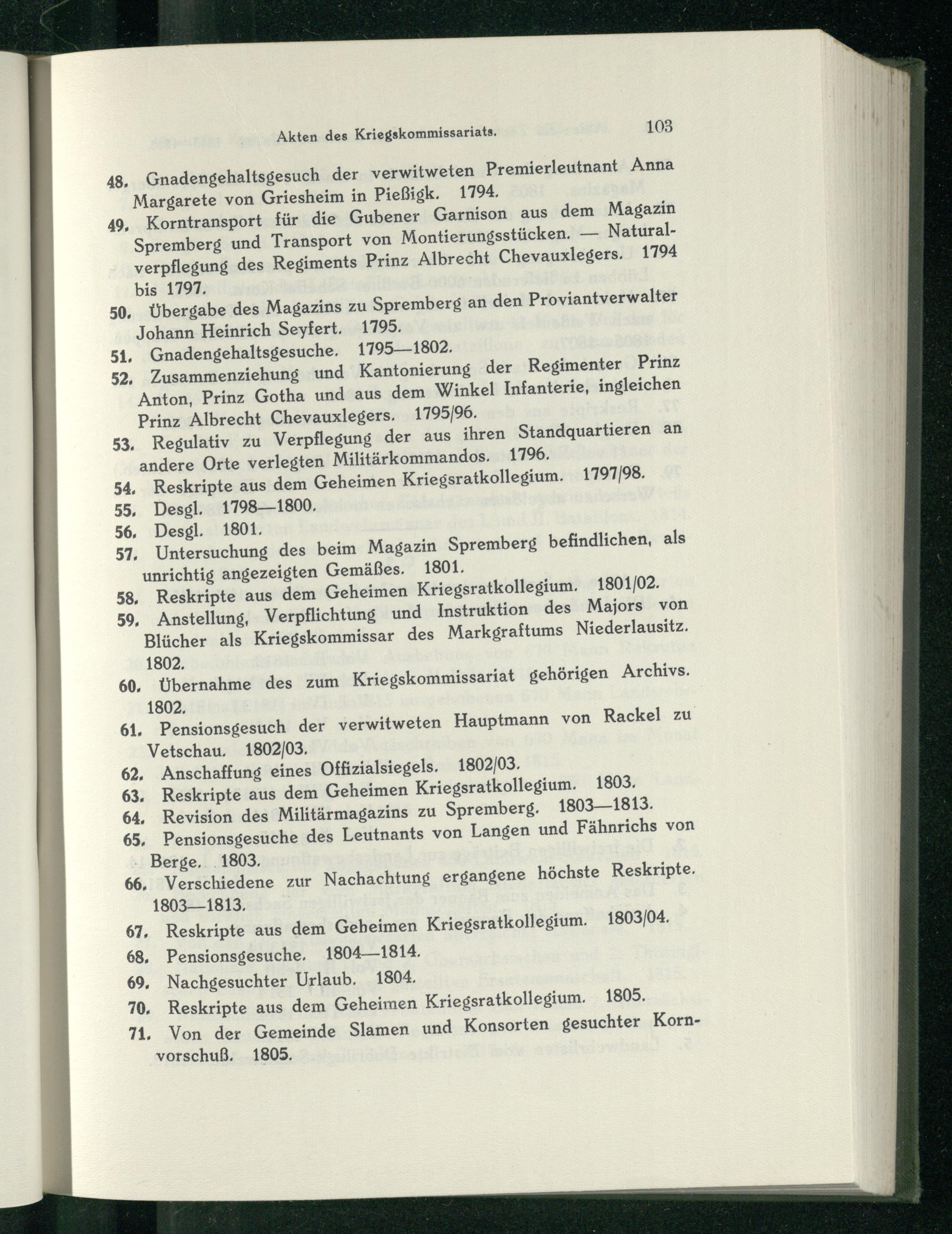 63. Reskripte aus dem Geheimen Kriegsratkollegium. 1803.