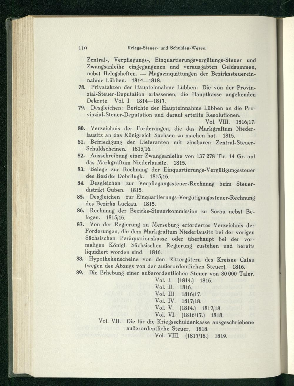 88, Hypothekenscheine von den Rittergütern des Kreises Calau (wegen des Abzugs von der außerordentlichen Steuer), 1816. 89, Die Erhebung einer außerordentlichen Steuer von 80 000 Taler.