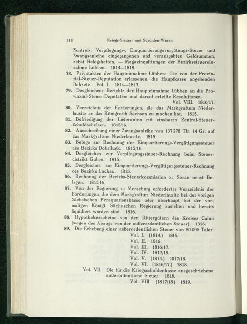 Vol. I.(1814.) 1816. Vol. IL 1816. Vol. III, 1816/17. Vol. IV. 1817/18. Vol. V.(1814) 1817/18. Vol. VI.(1816/17.) 1818, Vol, VIL_ Die für die Kriegsschuldenkasse ausgeschriebene außerordentliche Steuer. 1818, Vol. VIIL,(1817/18.) 1819,