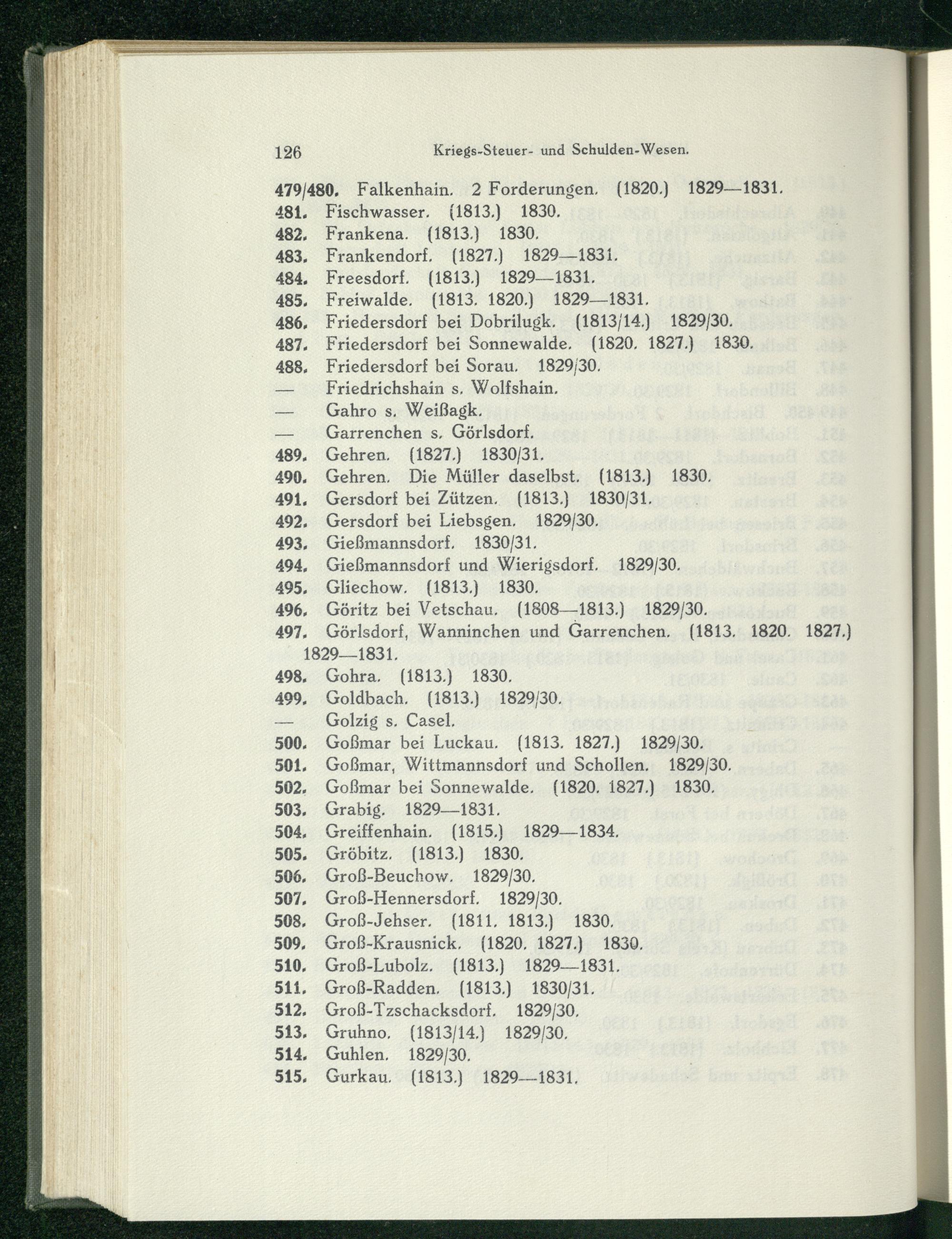 Groß-Jehser,(1811, 1813.) 1830, Groß-Krausnick,(1820, 1827.) 1830, Groß-Lubolz.{1813.) 1829-1831. Groß-Radden.(1813.) 1830/31. Groß-Tzschacksdorf, 1829/30,