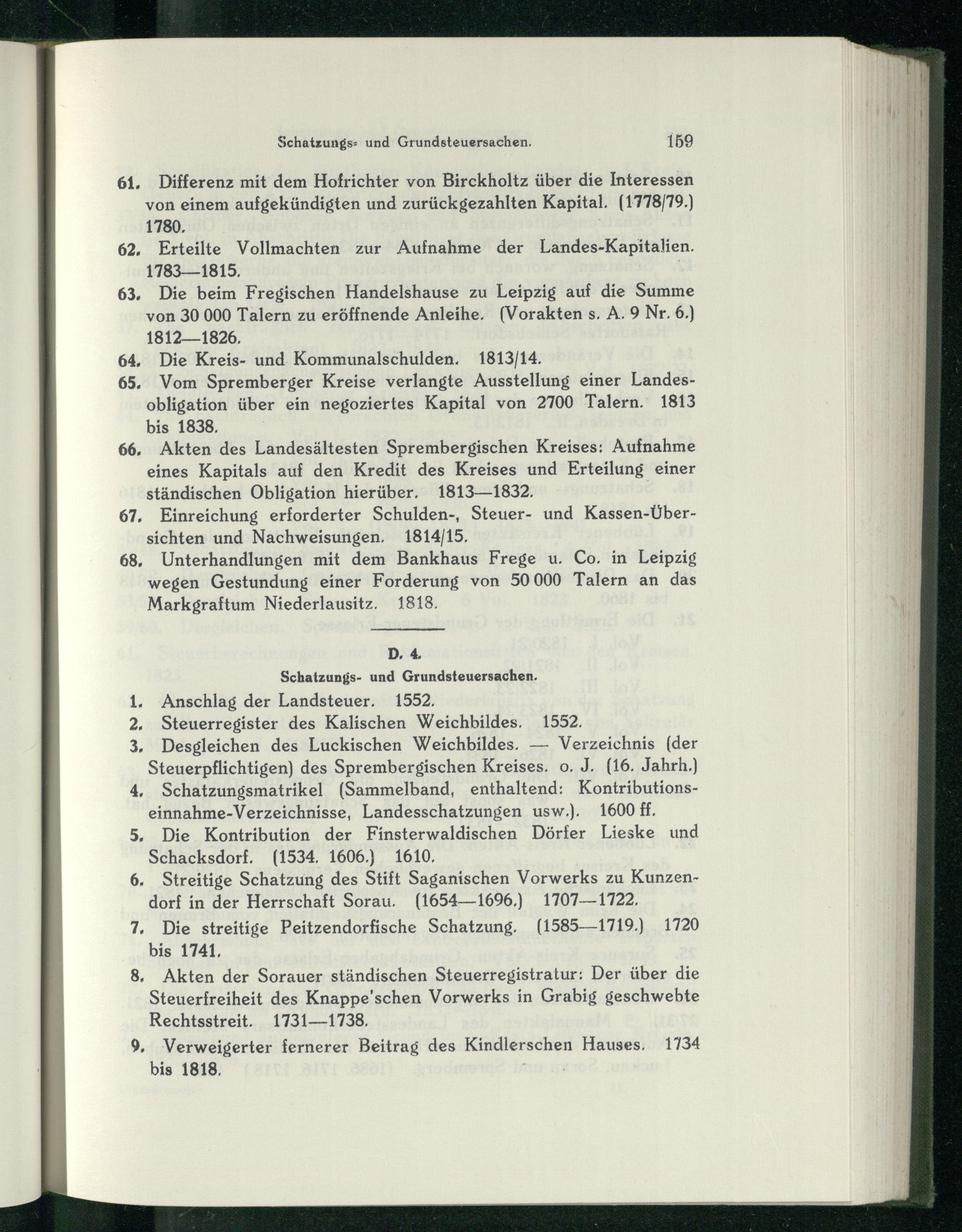 68, Unterhandlungen mit dem Bankhaus Frege u. Co. in Leipzig wegen Gestundung einer Forderung von 50000 Talern an das Markgraftum Niederlausitz . 1818,
