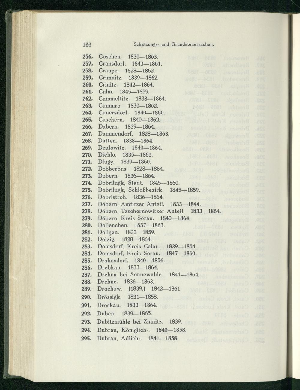Domsdorf, Kreis Calau , 1829—1854. Domsdorf, Kreis Sorau , 1847—1860. Drahnsdorf, 1840—1856,