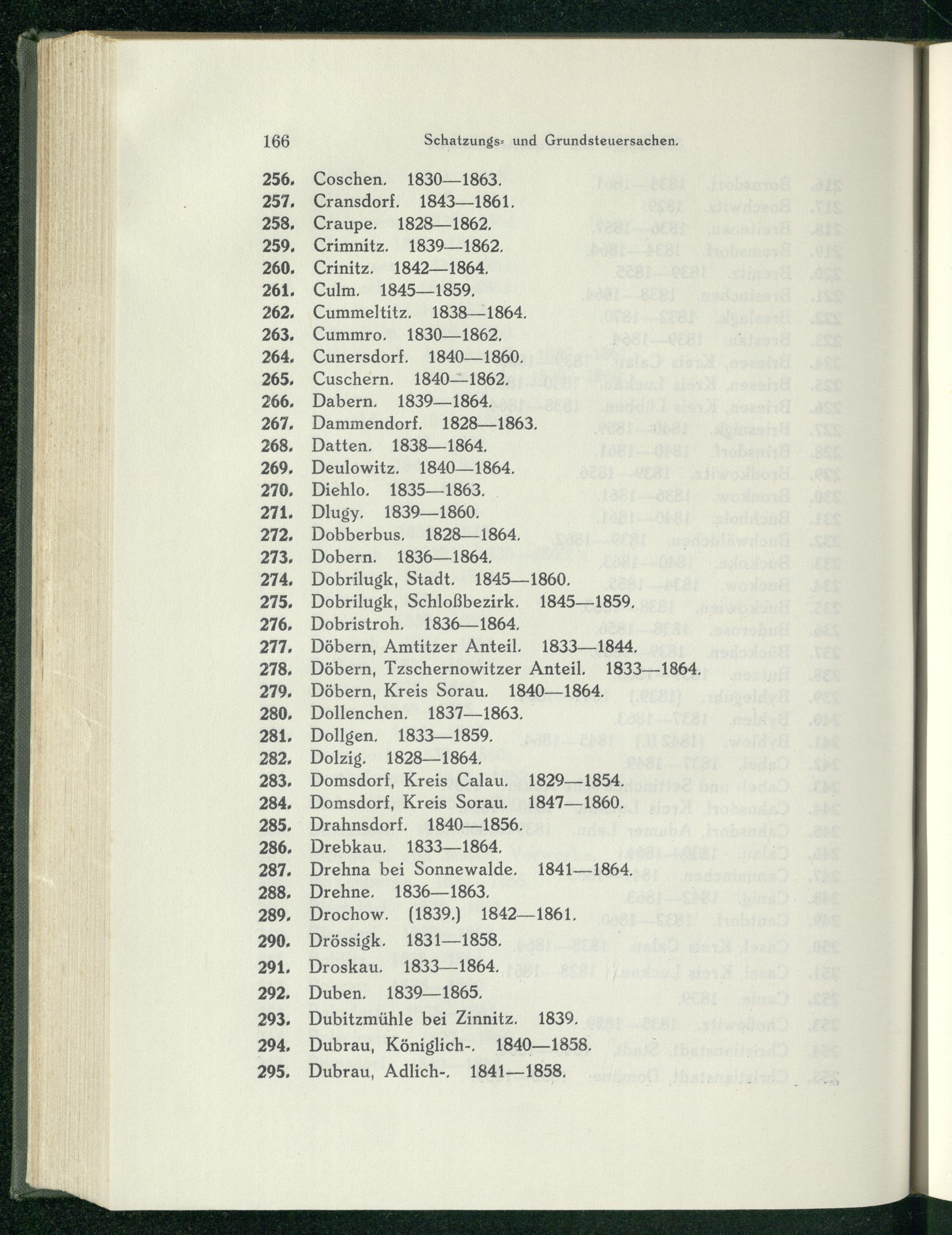 Domsdorf, Kreis Calau , 1829—1854. Domsdorf, Kreis Sorau , 1847—1860. Drahnsdorf, 1840—1856,