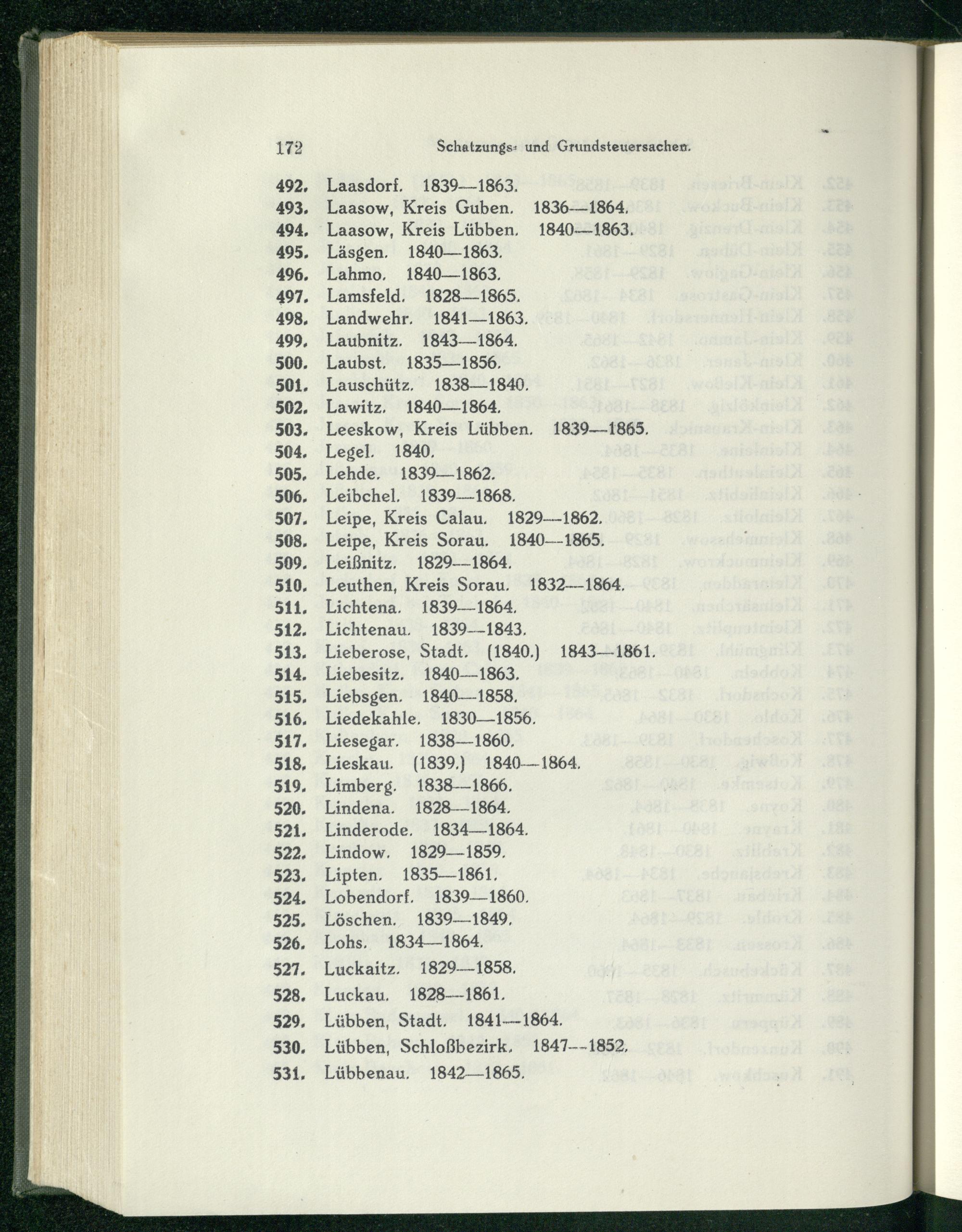 Laasow, Kreis Guben. 1836-—1864, Laasow, Kreis Lübben , 1840—1863. Läsgen. 1840—1863,