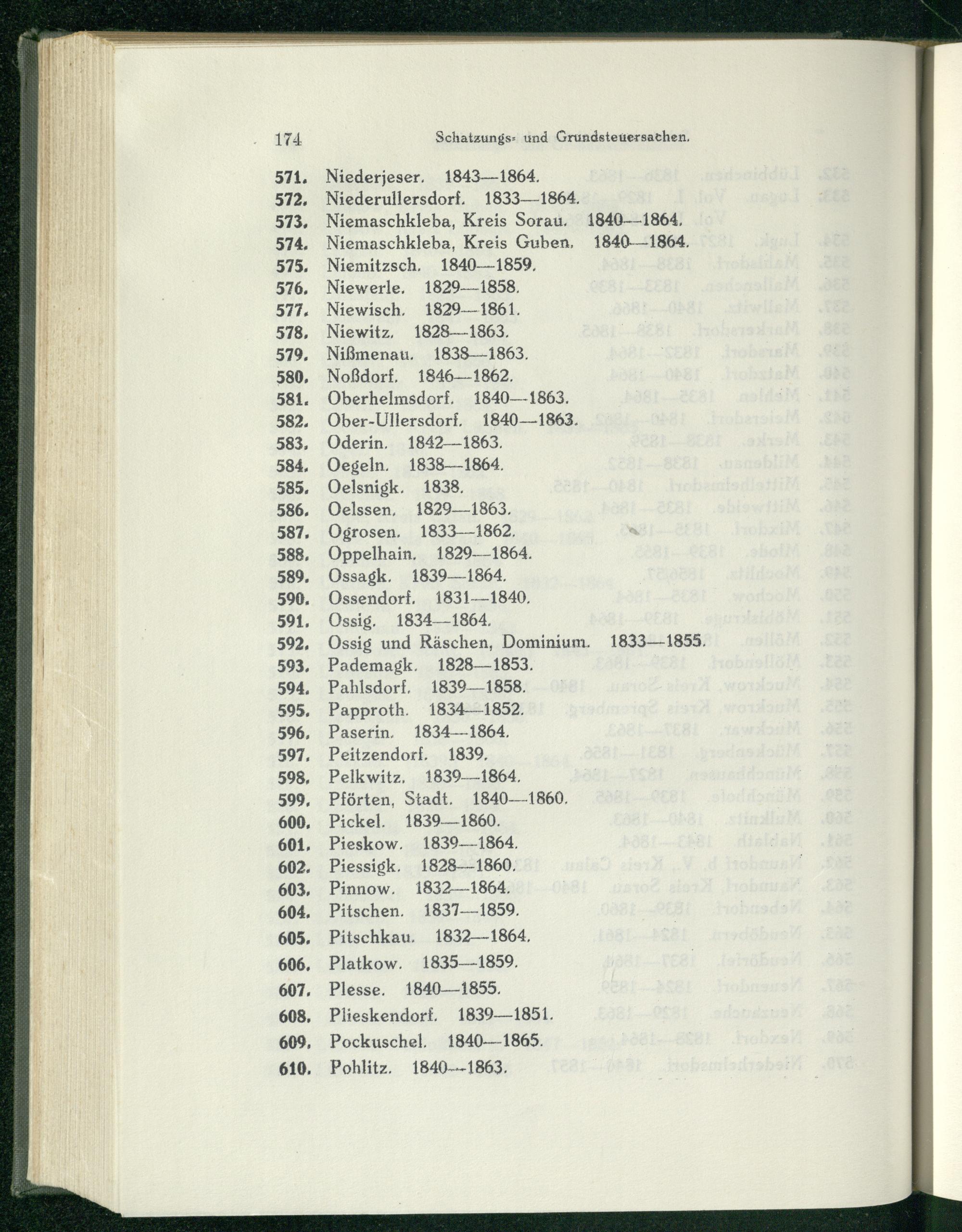 Oelssen, 1829—1863, Ogrosen . 1833-—1862, Oppelhain, 1829--—1864. Ossagk, 1839—1864, Ossendorf, 1831-—1840, Ossig, 1834—1864,