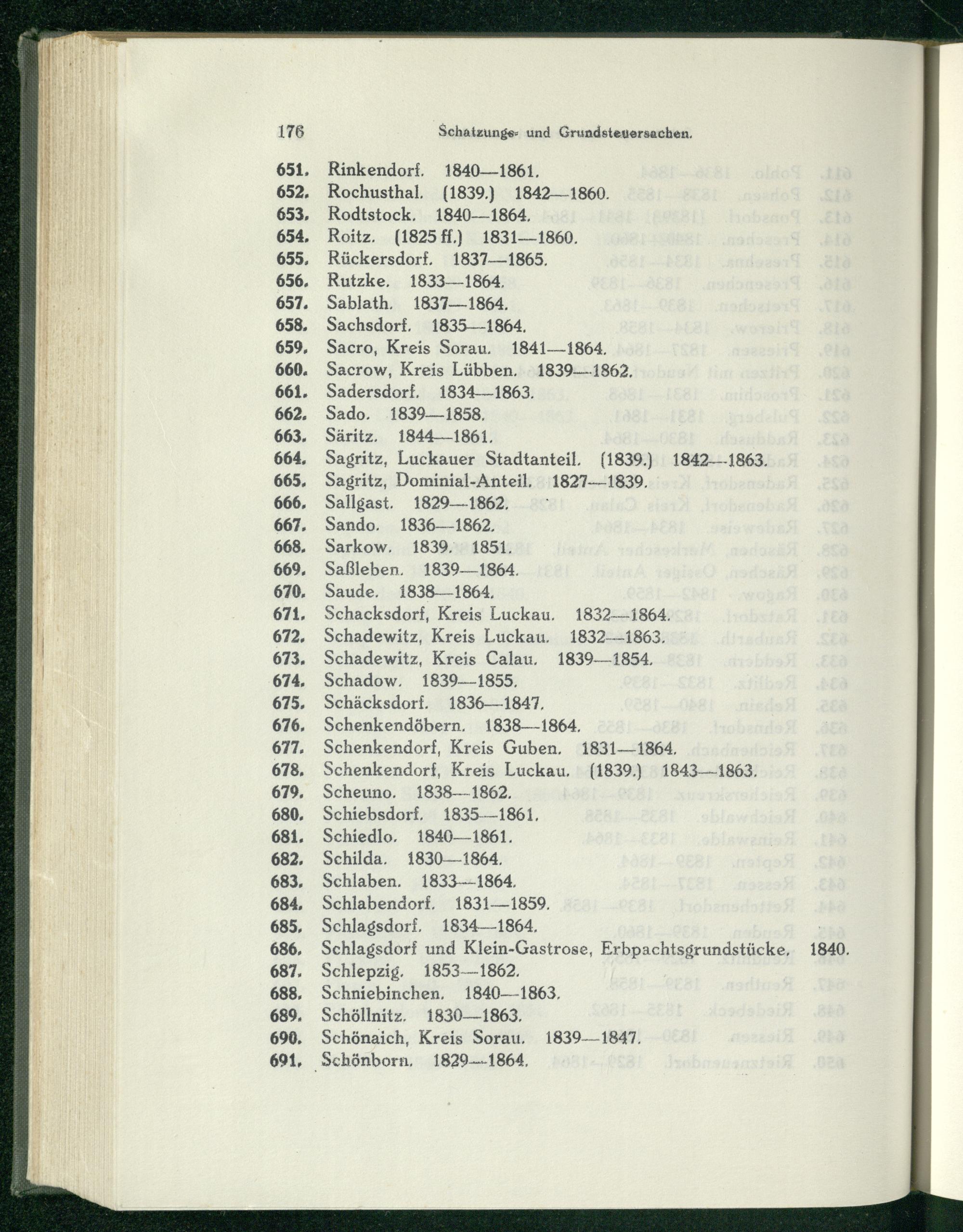 Schäcksdorf. 1836—1847, Schenkendöbern , 1838——1864, Schenkendorf, Kreis Guben. 1831-—1864, Schenkendorf, Kreis Luckau,(1839.) 1843—-1863, Scheuno. 1838-1862.