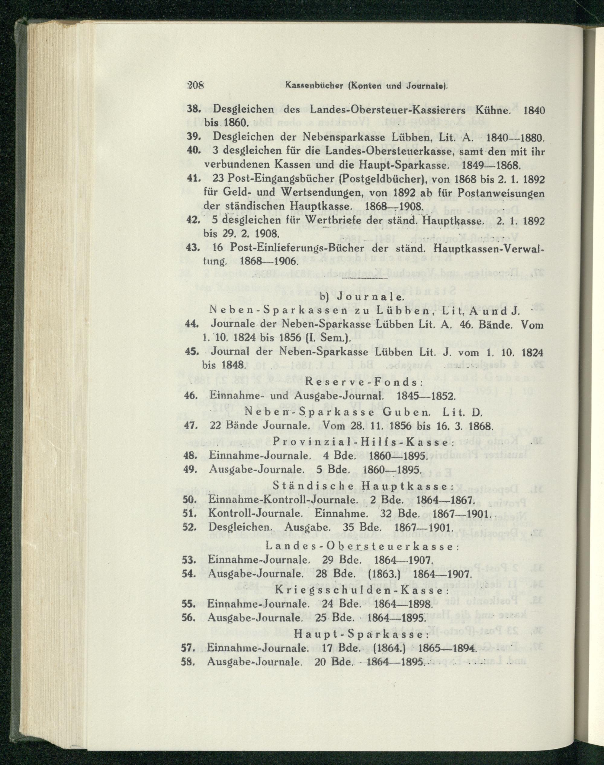 39, Desgleichen der Nebensparkasse Lübben , Lit. A. 1840—1880., 40. 3 desgleichen für die Landes-Obersteuerkasse, samt den mit ihr verbundenen Kassen und die Haupt-Sparkasse. 1849-—1868.