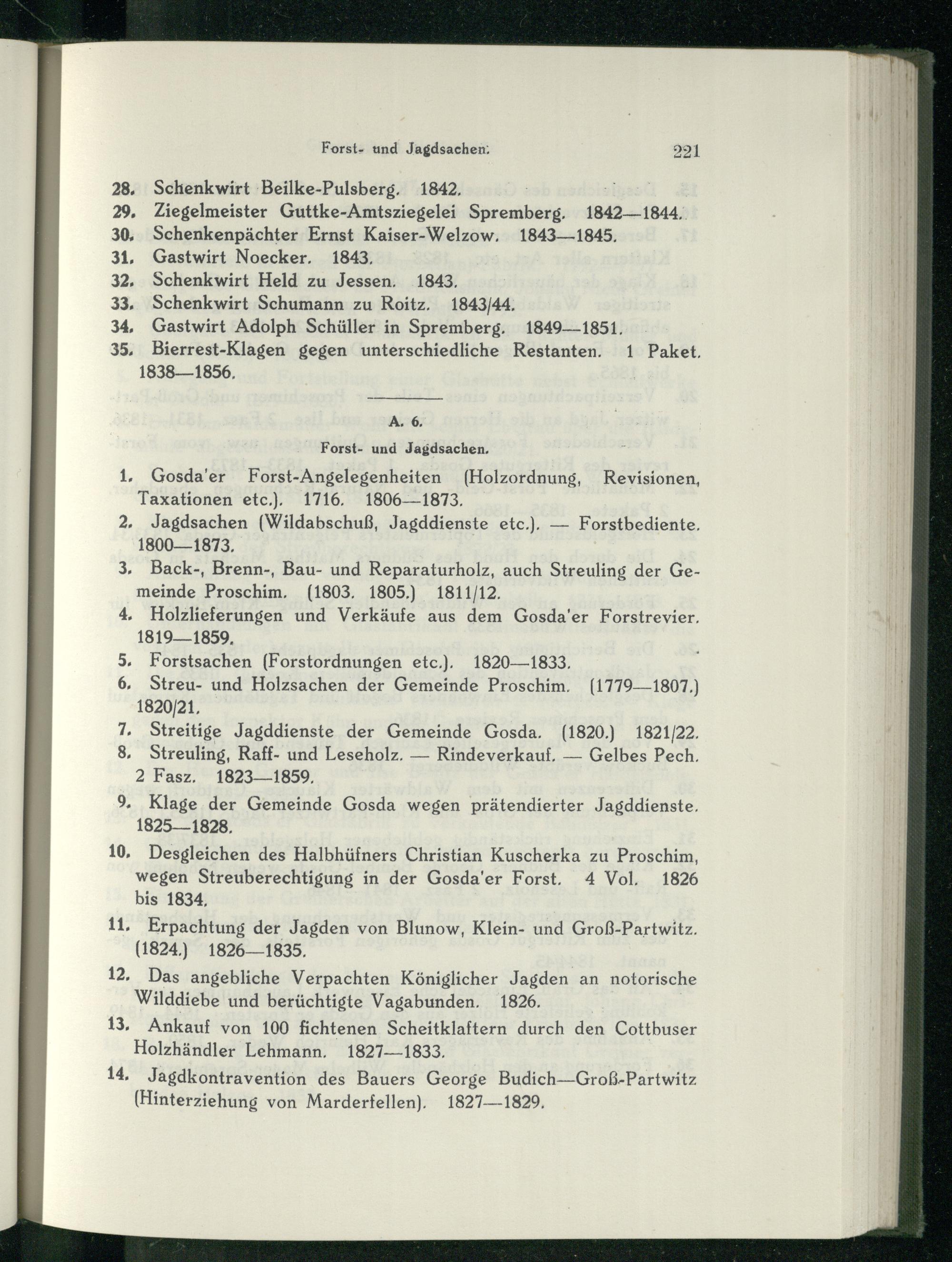 A, 6. Forst- und Jagdsachen,