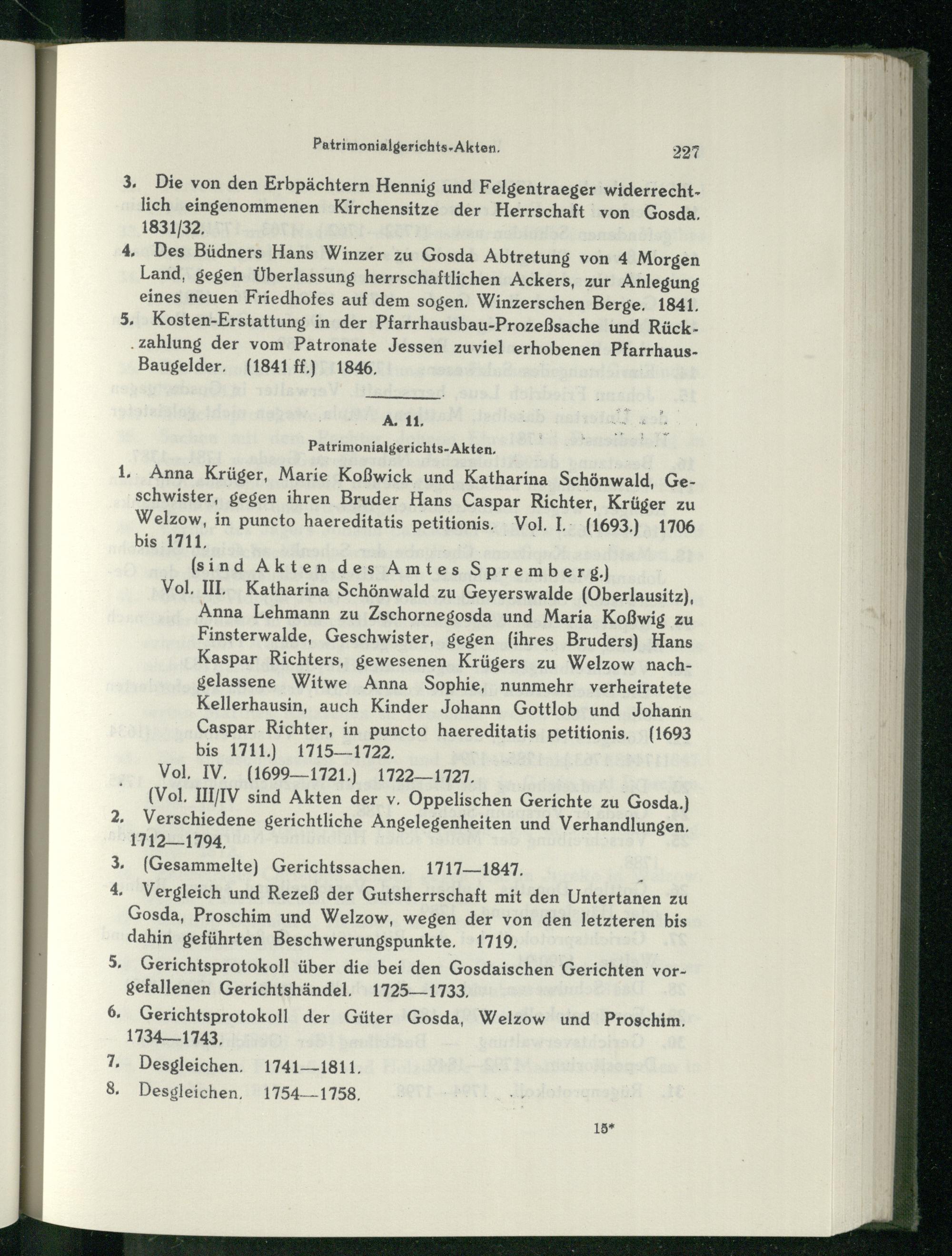 (Vol. III/IV sind Akten der v. Oppelischen Gerichte zu Gosda.)