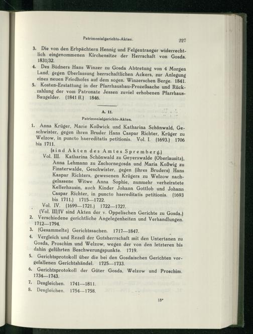 1, Anna Krüger, Marie Koßwick und Katharina Schönwald, Geschwister, gegen ihren Bruder Hans Caspar Richter, Krüger zu Welzow , in puncto haereditatis petitionis. Vol.[I(1693.) 1706 bis 1711,