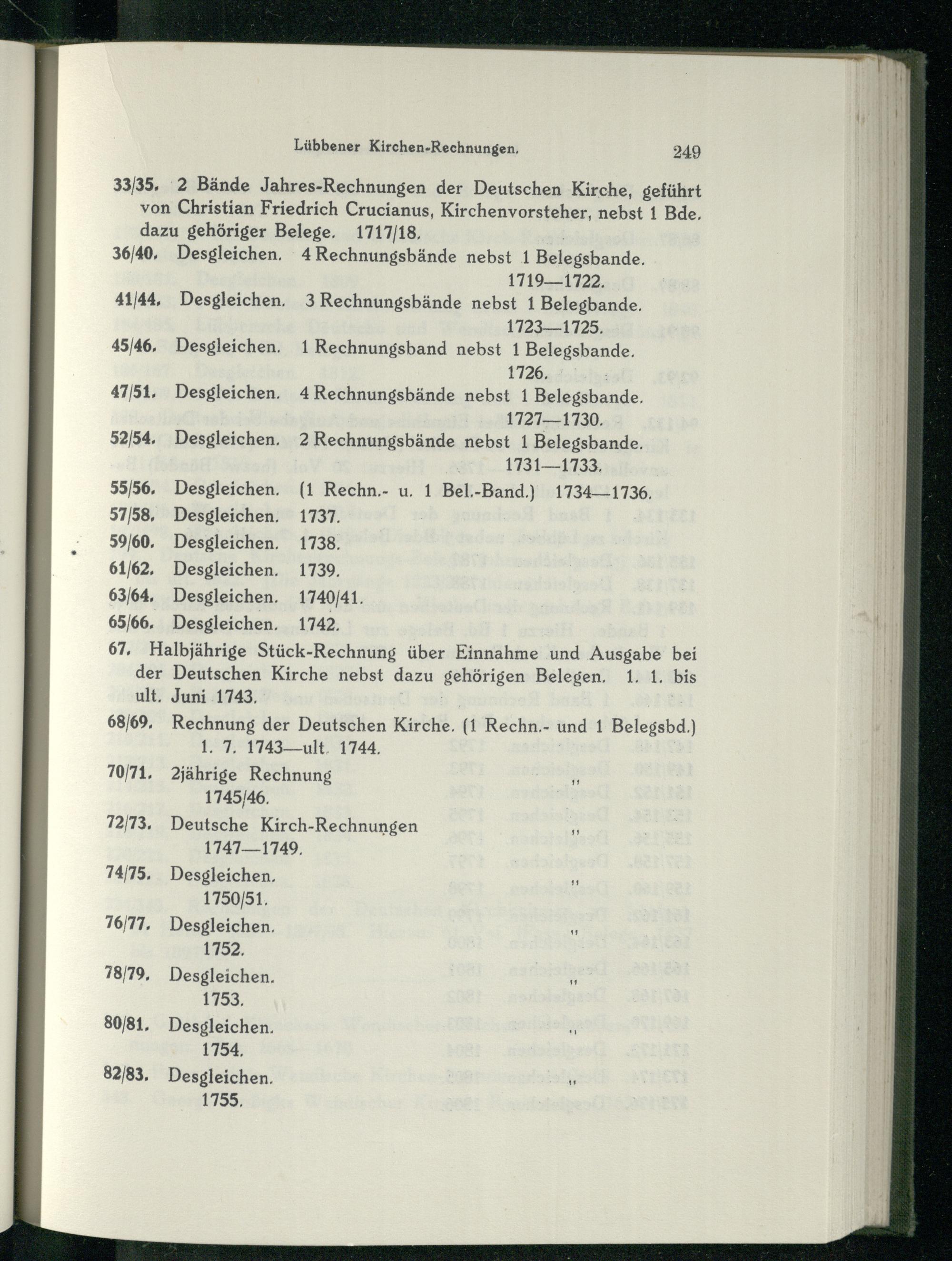 33/35. 2 Bände Jahres-Rechnungen der Deutschen Kirche, geführt von Christian Friedrich Crucianus, Kirchenvorsteher, nebst 1 Bde,