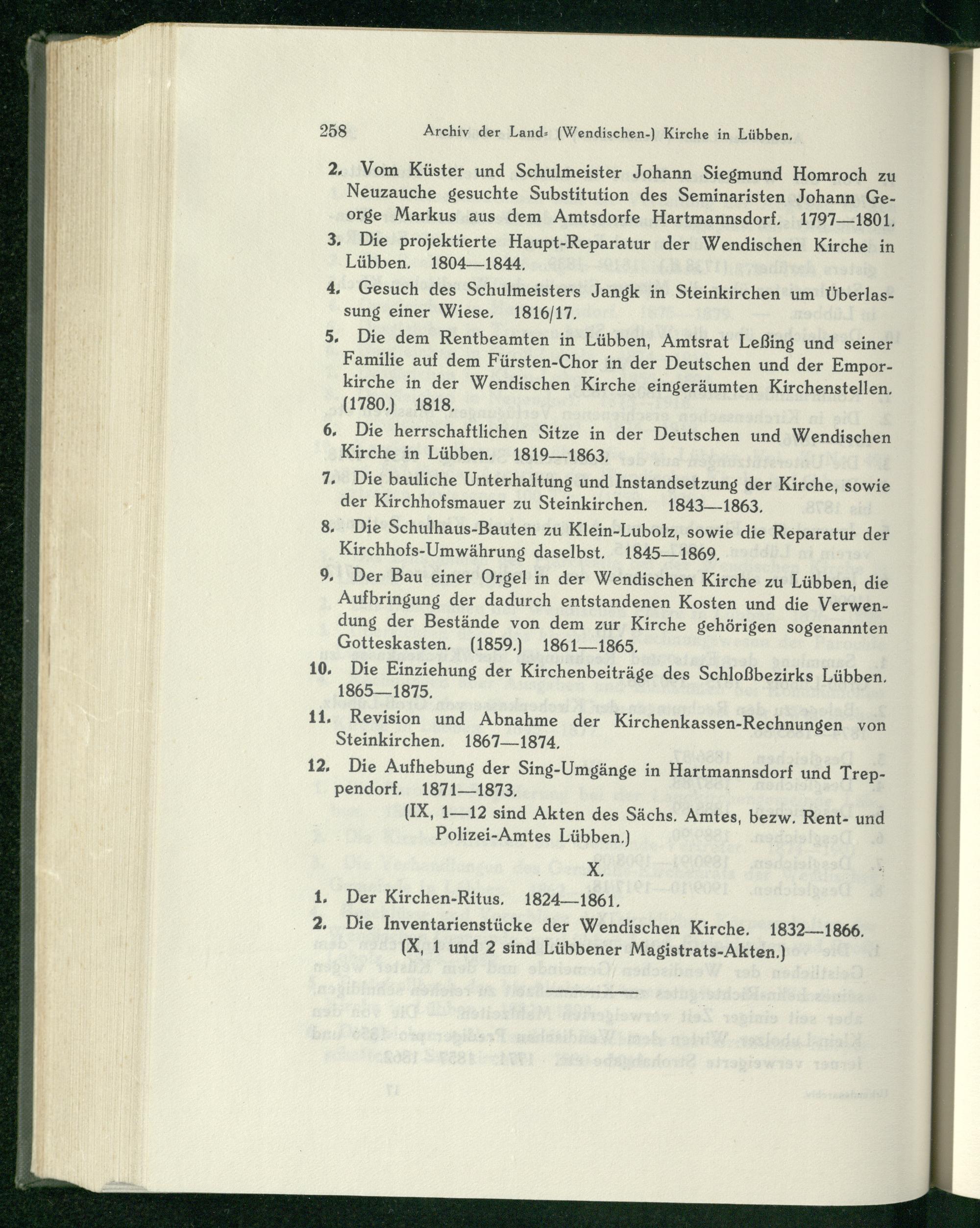 2, Die Inventarienstücke der Wendischen Kirche. 1832— 1866, (X, 1 und 2 sind Lübbener Magistrats-Akten,)