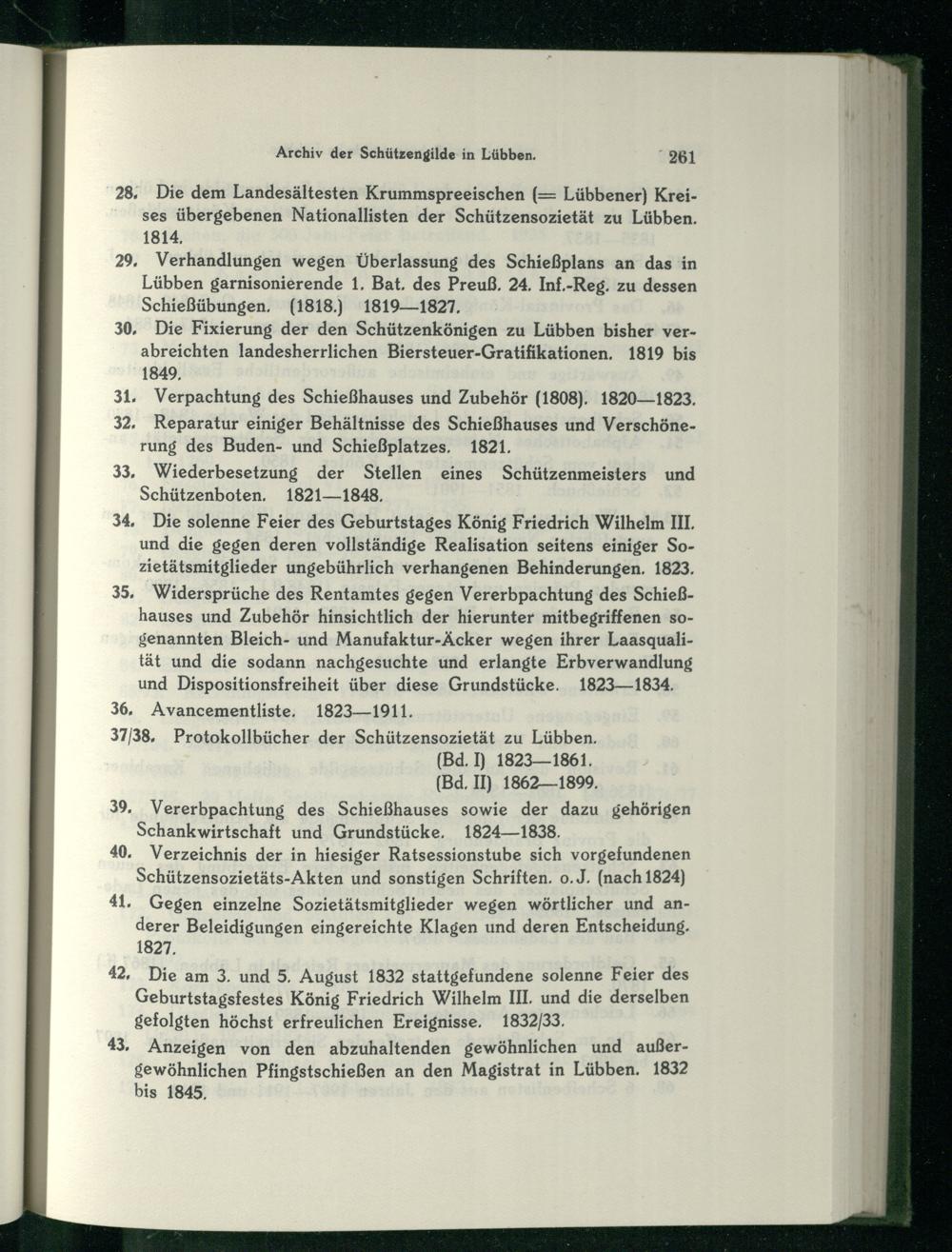 28, Die dem Landesältesten Krummspreeischen(= Lübbener) Kreises übergebenen Nationallisten der Schützensozietät zu Lübben . 1814,