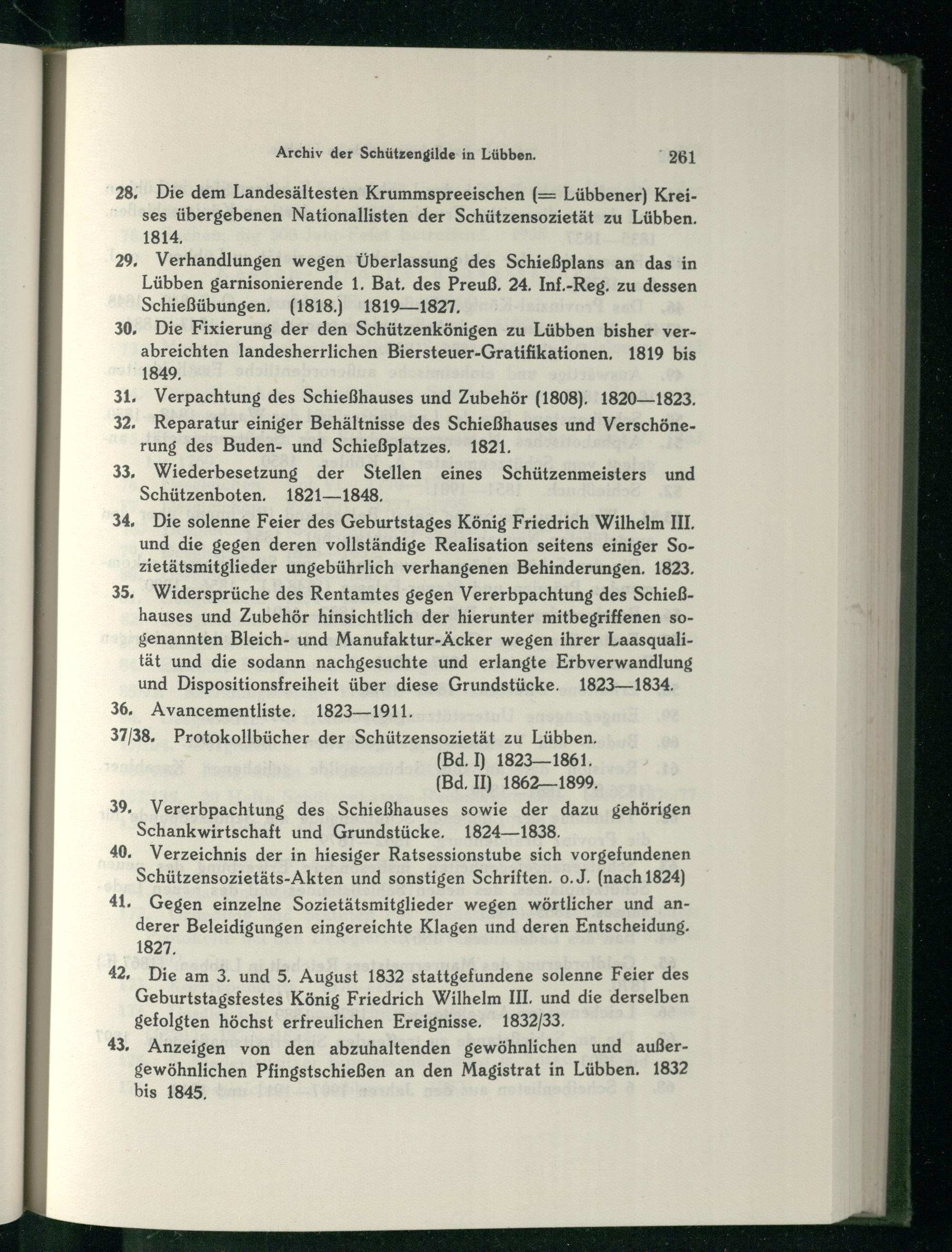 30, Die Fixierung der den Schützenkönigen zu Lübben bisher verabreichten landesherrlichen Biersteuer-Gratifikationen. 1819 bis 1849,