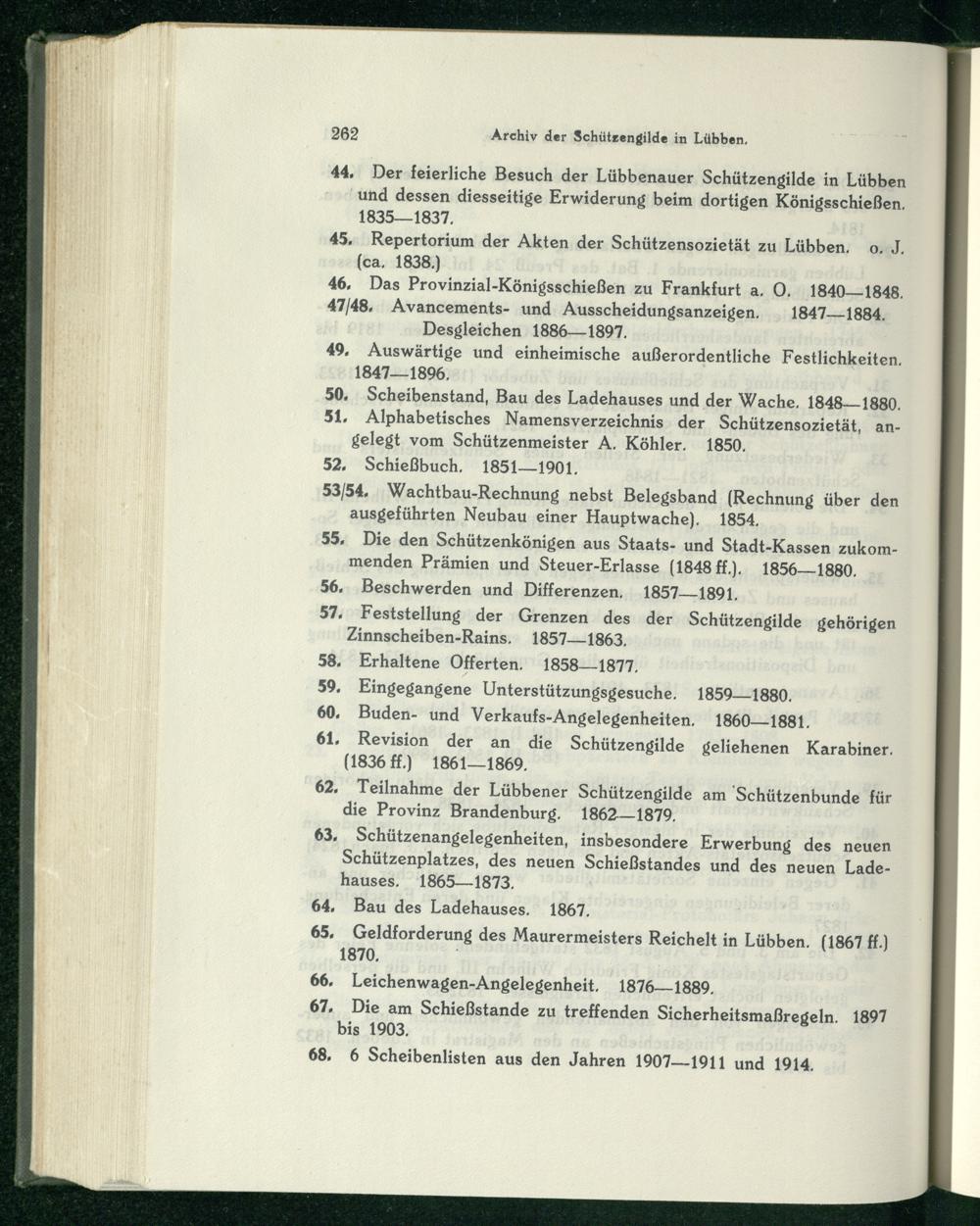 45. Repertorium der Akten der Schützensozietät zu Lübben . o. J.