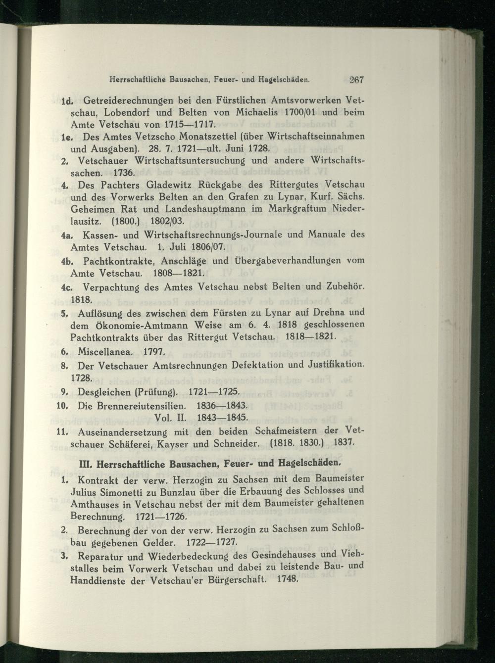 1d, Getreiderechnungen bei den Fürstlichen Amtsvorwerken Vetschau, Lobendorf und Belten von Michaelis 1700/01 und beim Amte Vetschau von 1715—1717.