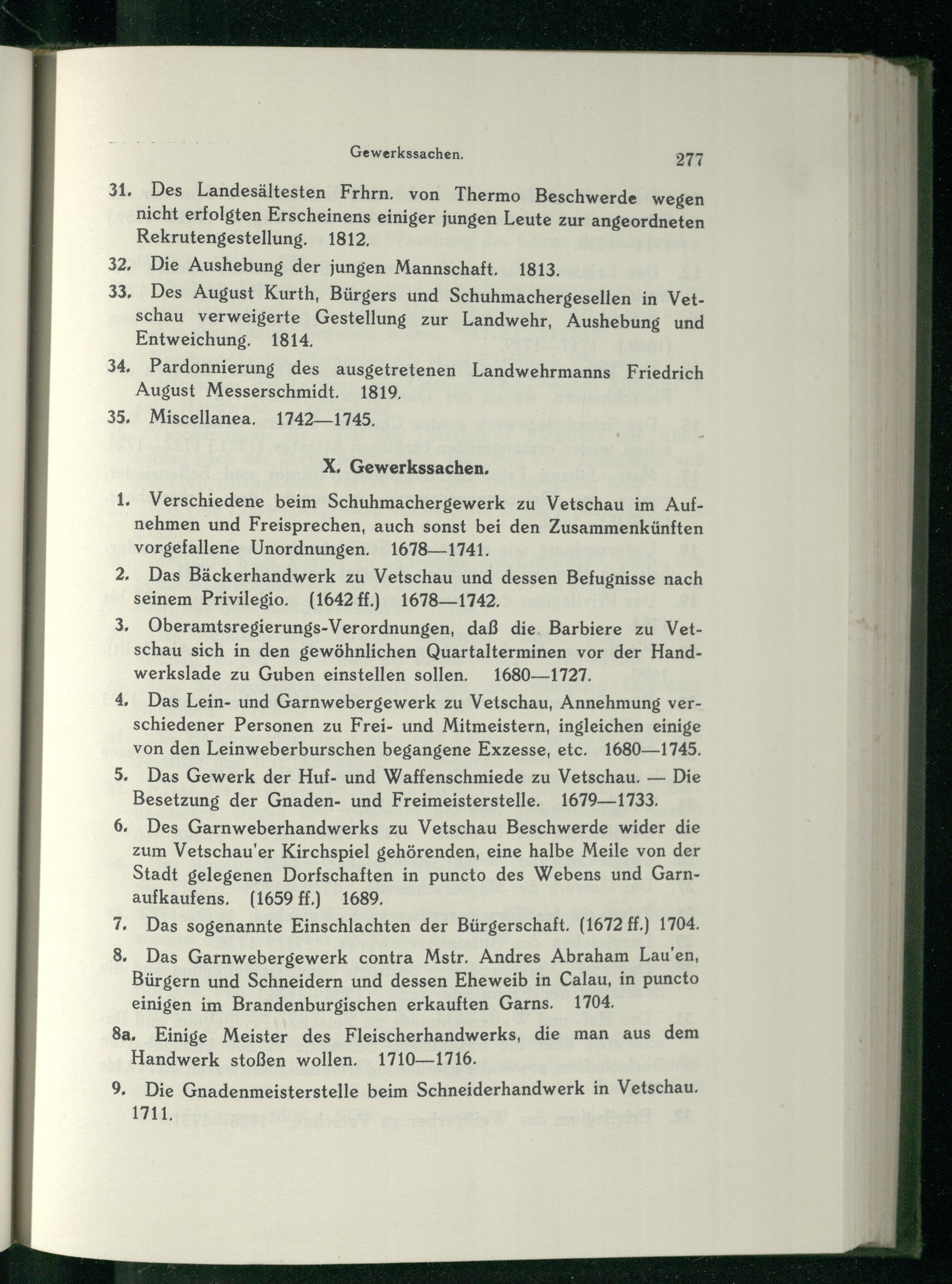 1, Verschiedene beim Schuhmachergewerk zu Vetschau im Aufnehmen und Freisprechen, auch sonst bei den Zusammenkünften vorgefallene Unordnungen. 1678—1741.