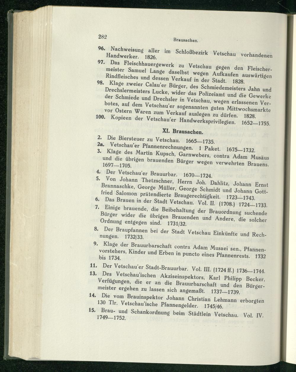 6. Das Brauen in der Stadt Vetschau . Vol. II.(1708) 17241783.