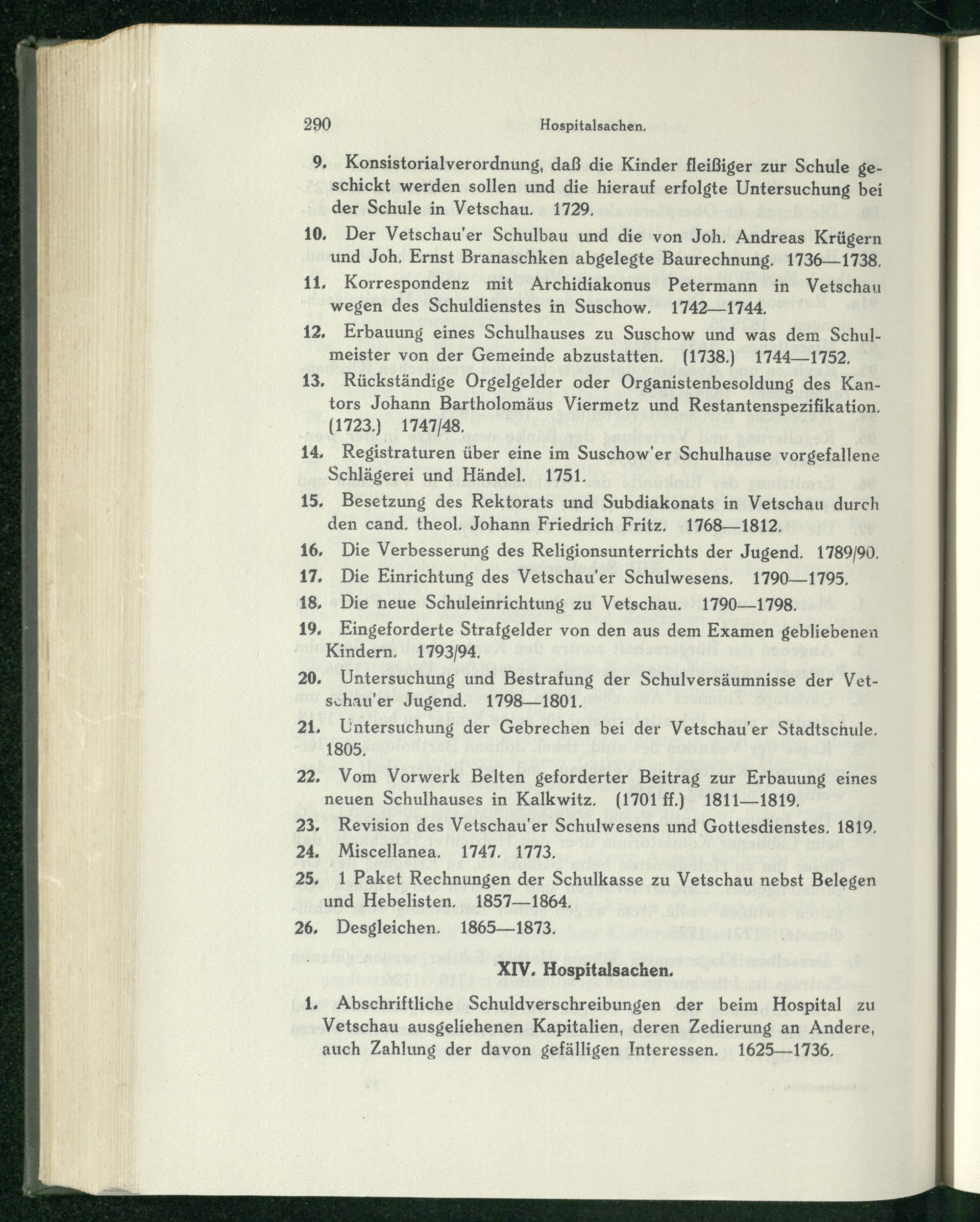 17, Die Einrichtung des Vetschau’er Schulwesens, 1790—1795.
