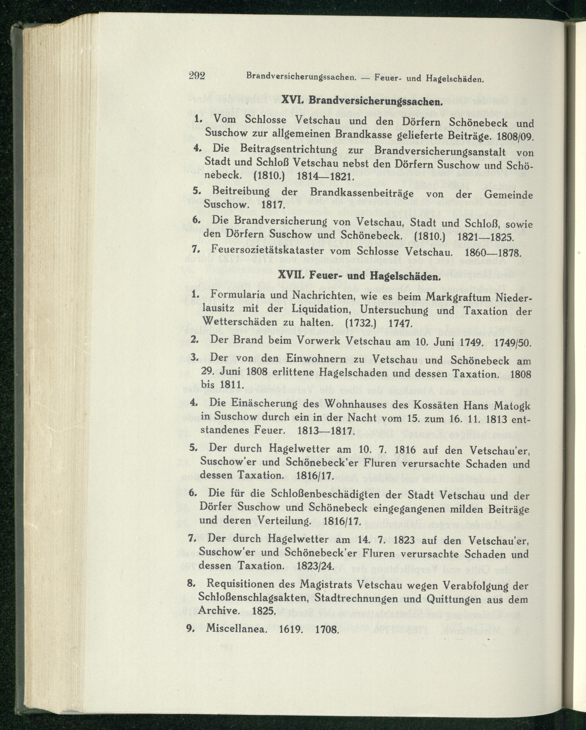1. Vom Schlosse Vetschau und den Dörfern Schönebeck und Suschow zur allgemeinen Brandkasse gelieferte Beiträge, 1808/09.