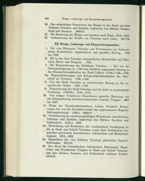 15, Der durch die französischen, italienischen, Rheinbund-, Russischen und Preußischen Truppen in Stadt und Schloß Vetschau und den Dörfern Suschow und Schönebeck erlittene Verlust. 1813/14;