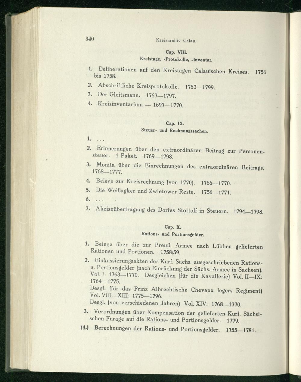 2, Einkassierungsakten der Kurf. Sächs. ausgeschriebenen Rationsu, Portionsgelder(nach Einrückung der Sächs. Armee in Sachsen ). Vol. I: 1763—1770, Desgleichen(für die Kavallerie) Vol, II—IX: 1764—1775,