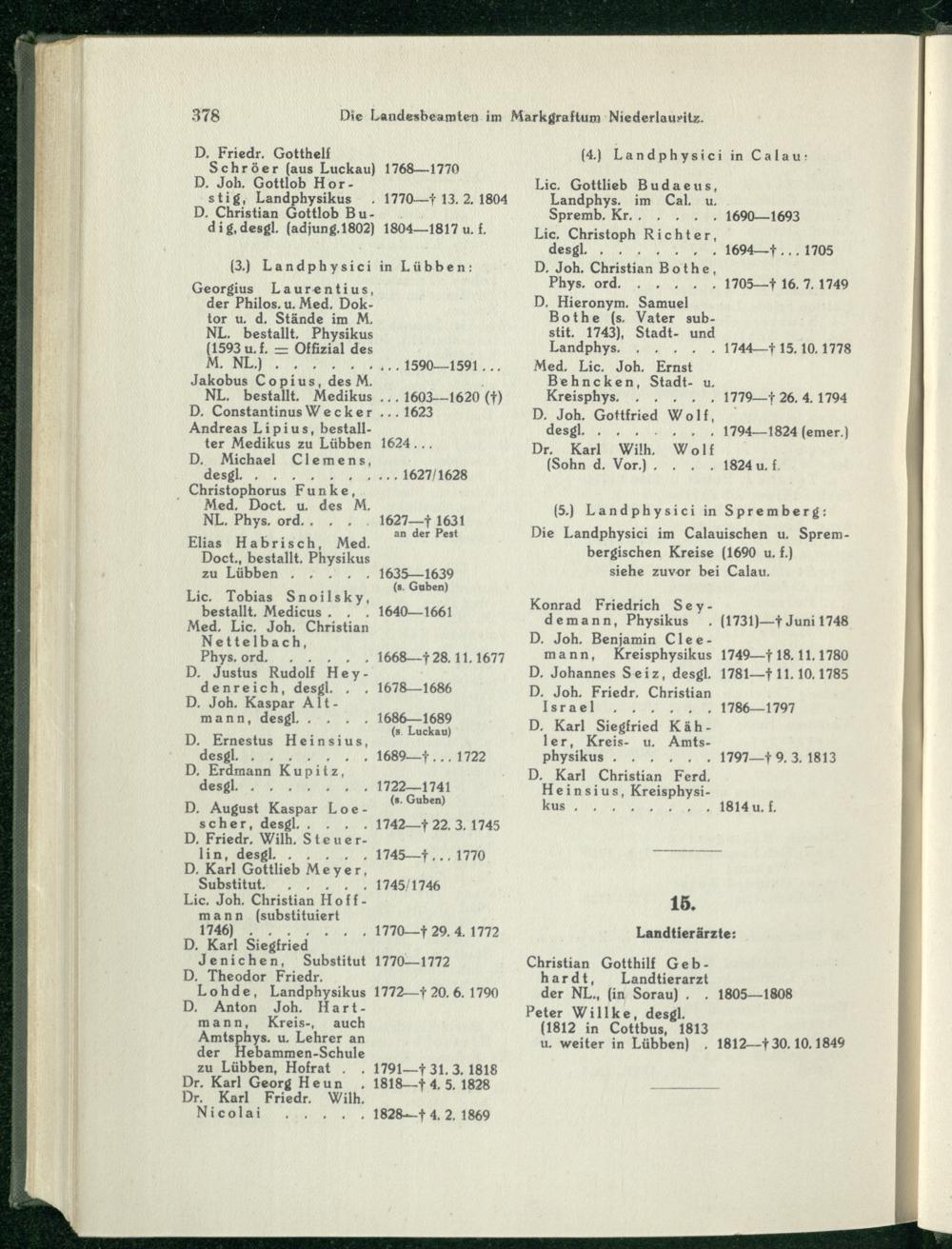 (5) Landphysici in Spremberg : Die Landphysici im Calauischen u. Sprembergischen Kreise(1690 u. f.) siehe zuvor bei Calau ,