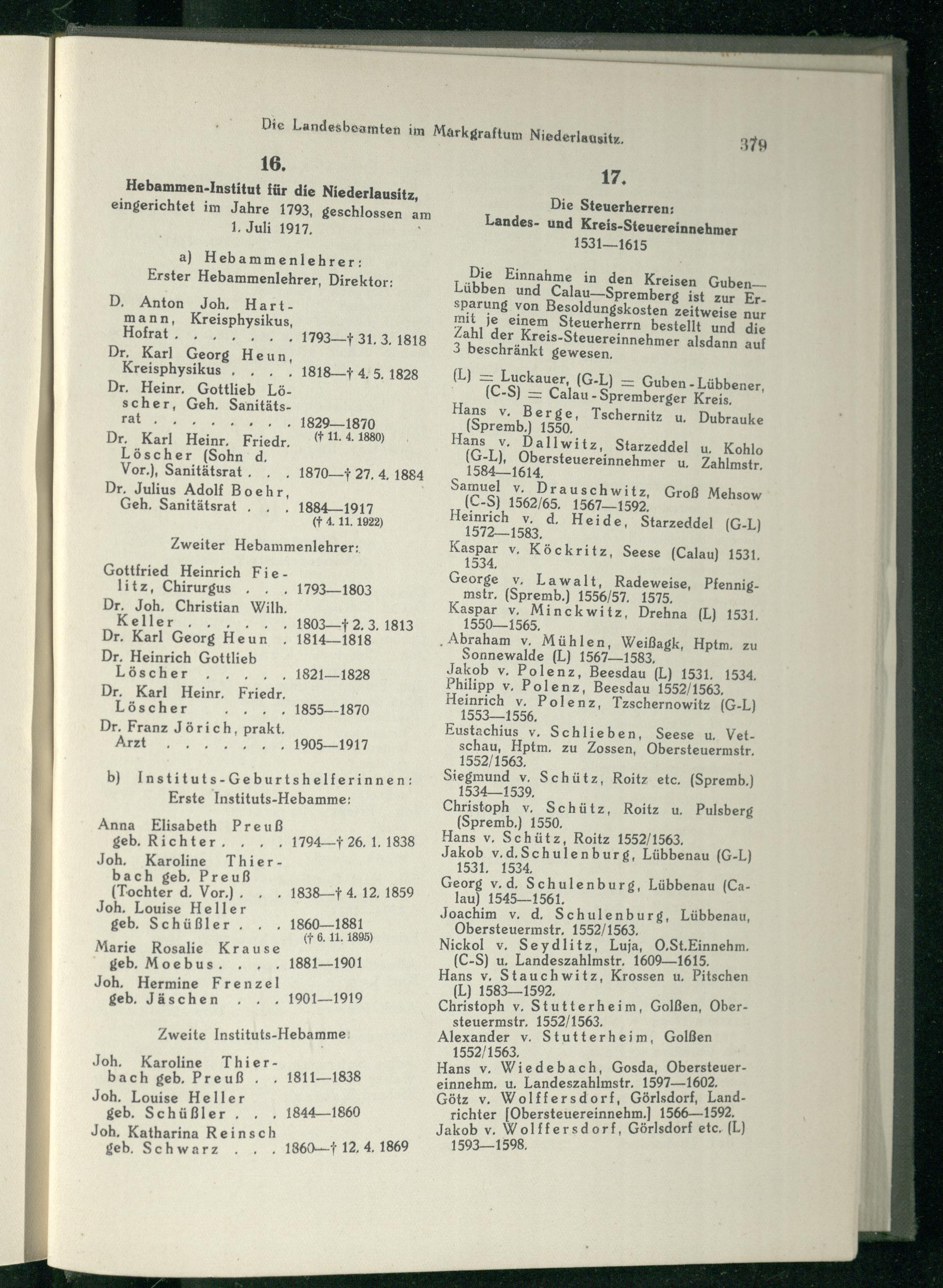 Hebammen-Institut für die Niederlausitz , eingerichtet im Jahre 1793, geschlossen am 1, Juli 1917, 7